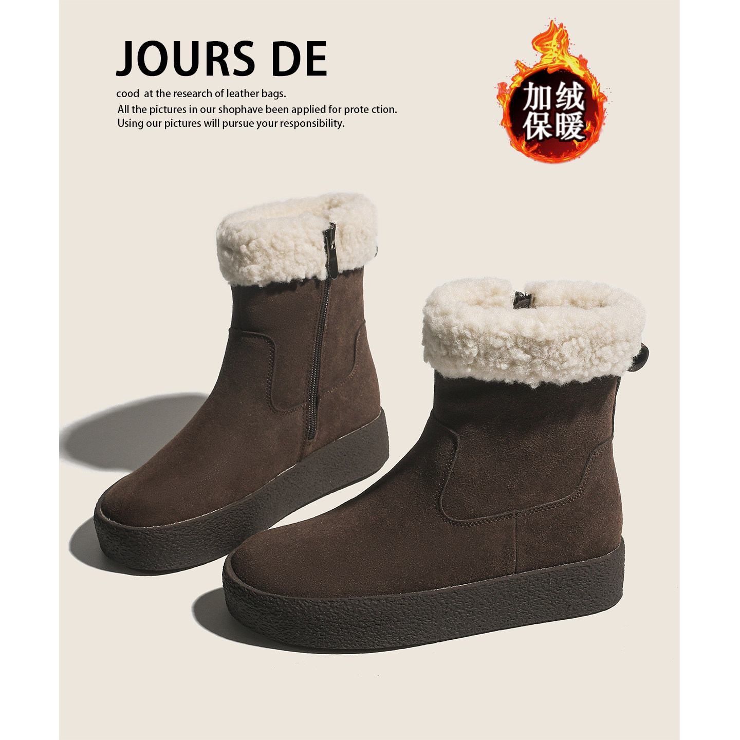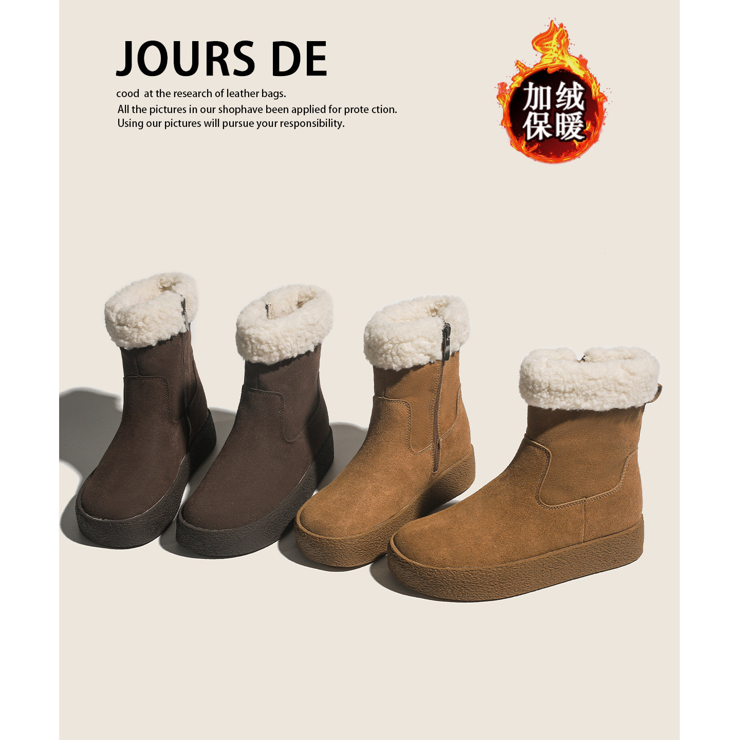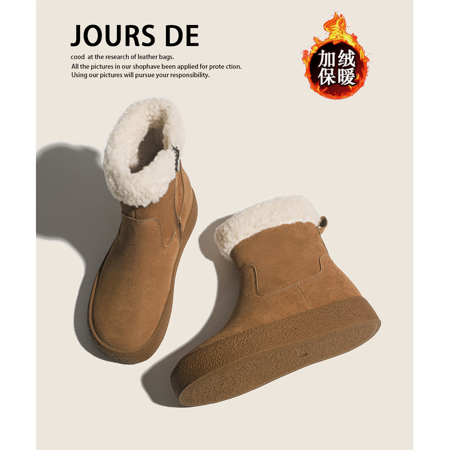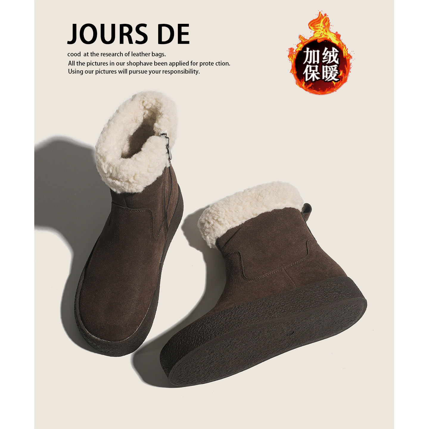 牛皮羊羔毛雪地靴女冬季新款真皮复古加绒保暖加厚短靴勃肯棉鞋