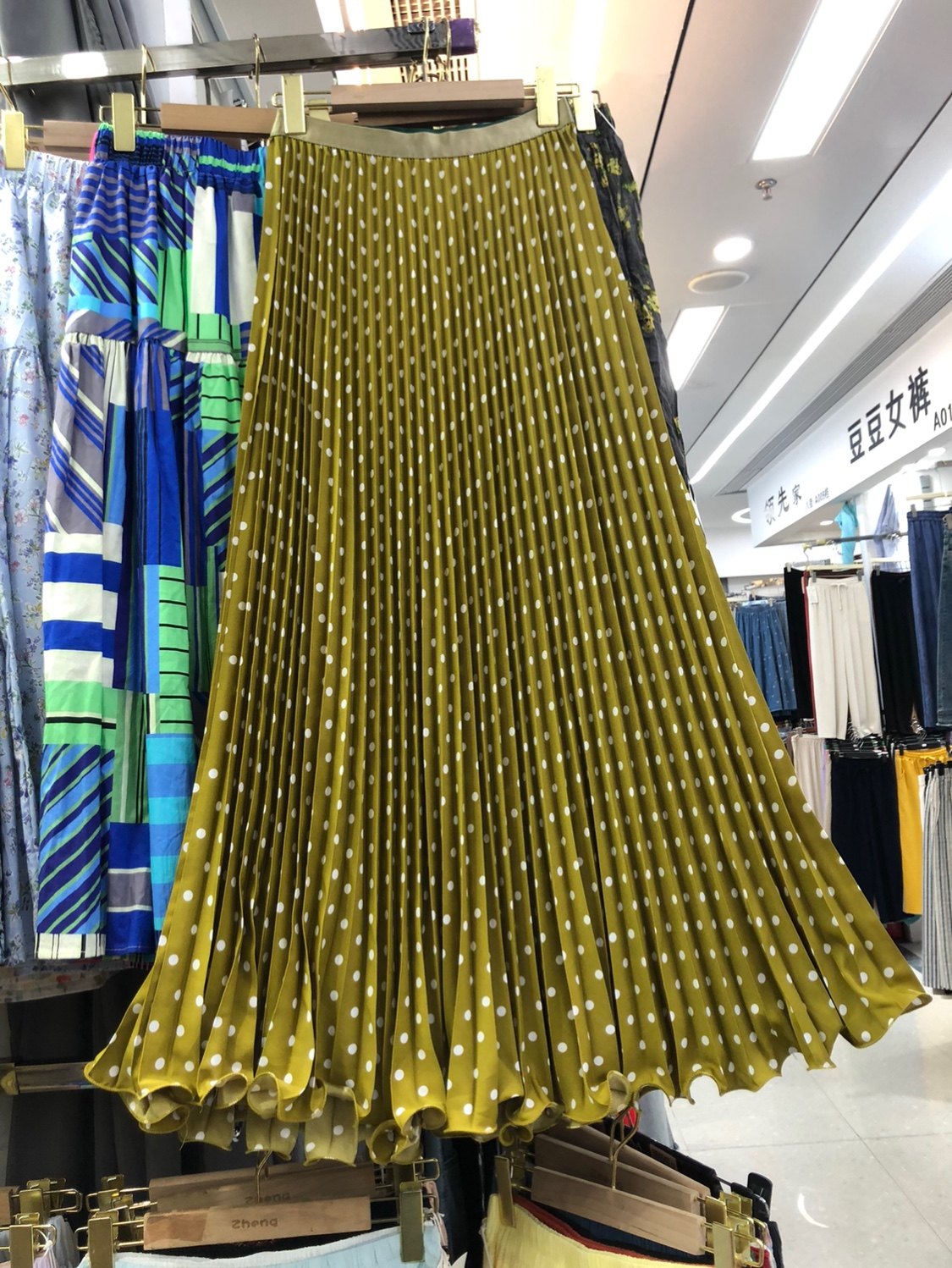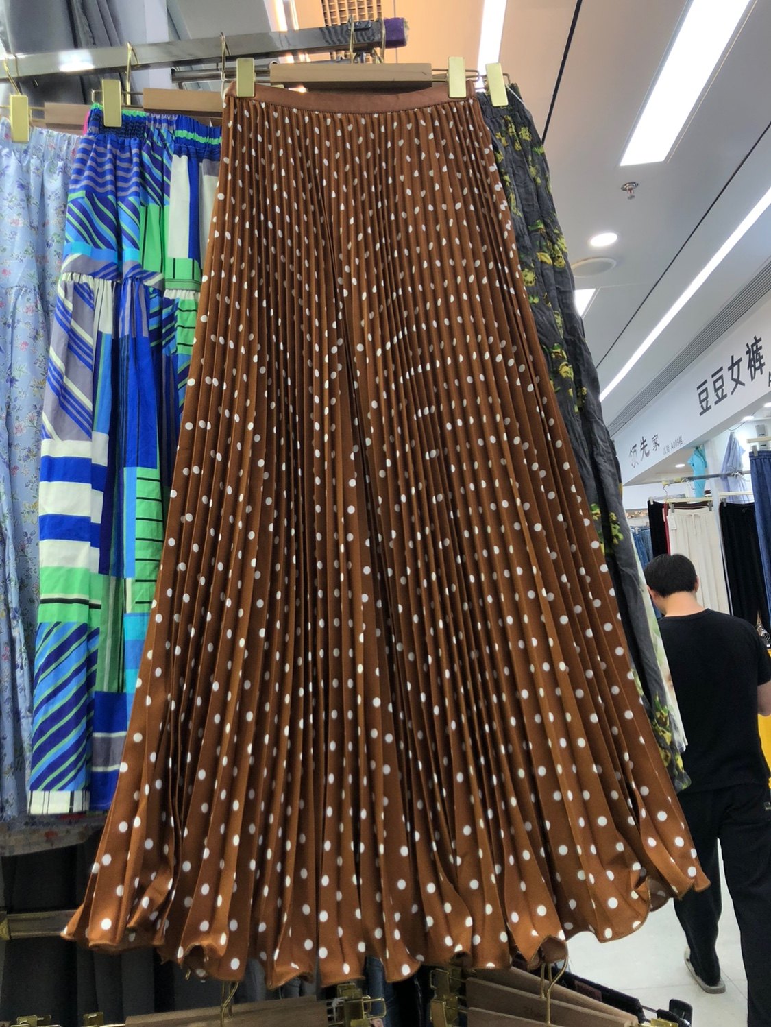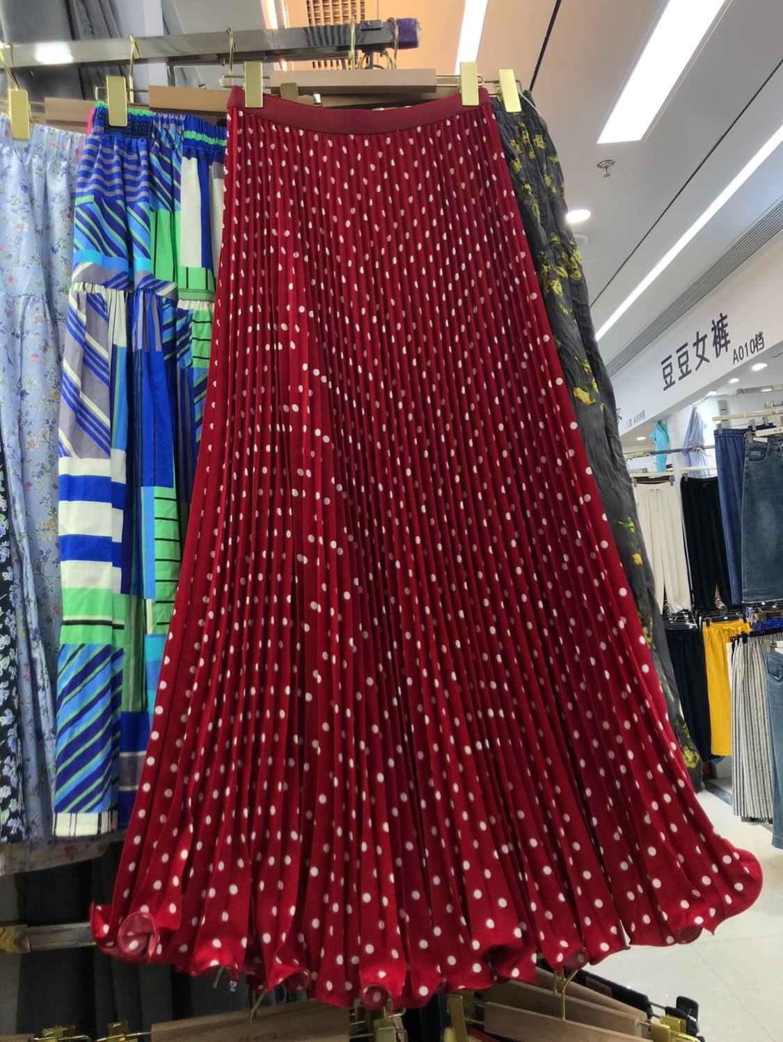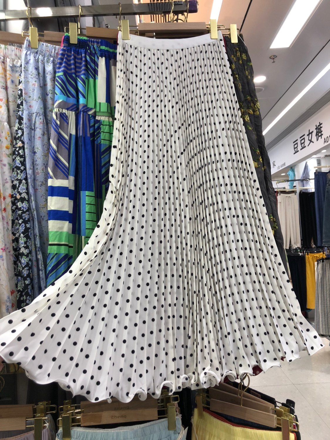 2025夏季日韩气质高腰显瘦白色雪纺波点百褶裙花边大摆半身长裙女