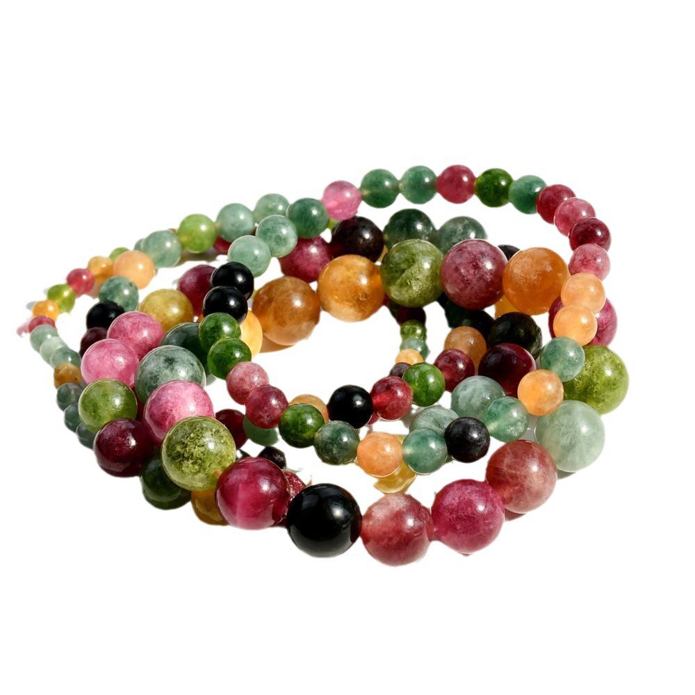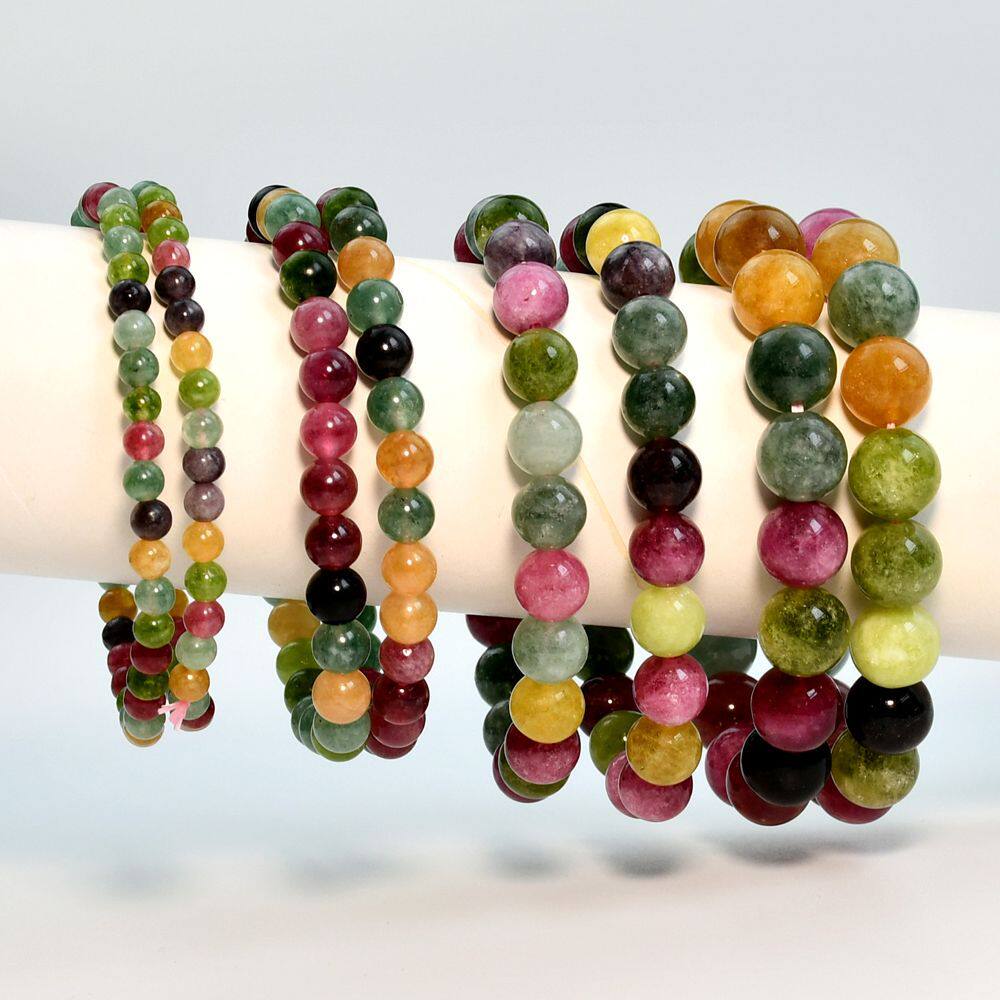 天然巴西老料糖果碧玺手链女单圈三圈彩色宝石手串女七彩中国风