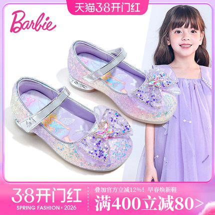 芭比童鞋儿童皮鞋2026新款春秋软底水钻小高跟公主鞋女童水晶鞋