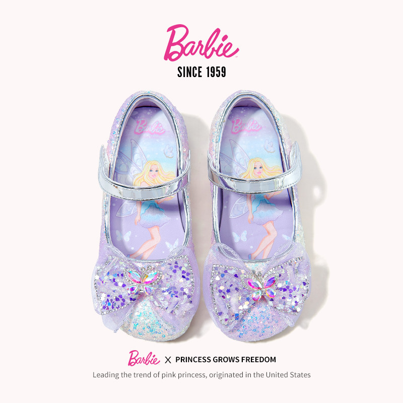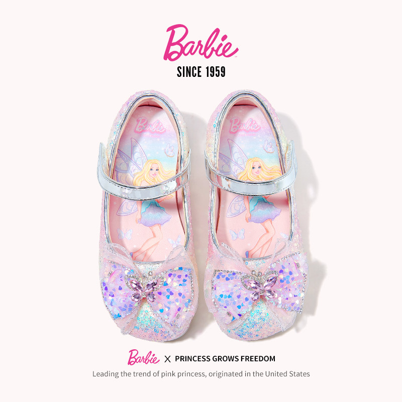 芭比女童水晶鞋公主鞋儿童皮鞋