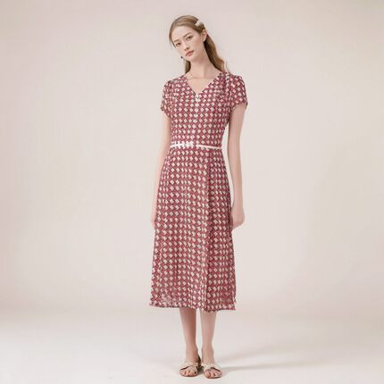 天轩雪纺V领短袖连衣裙