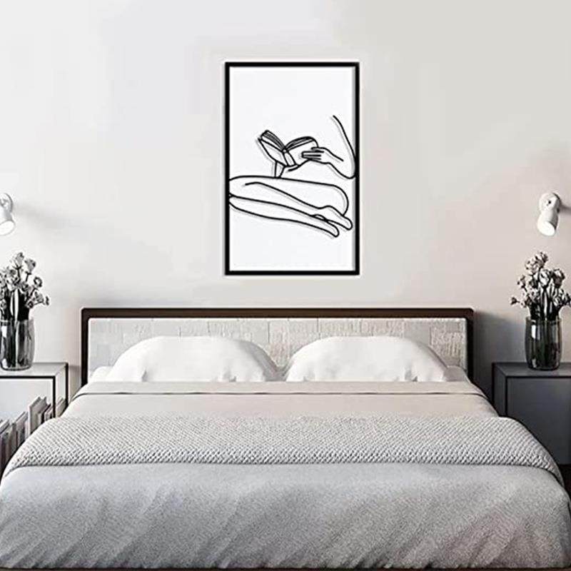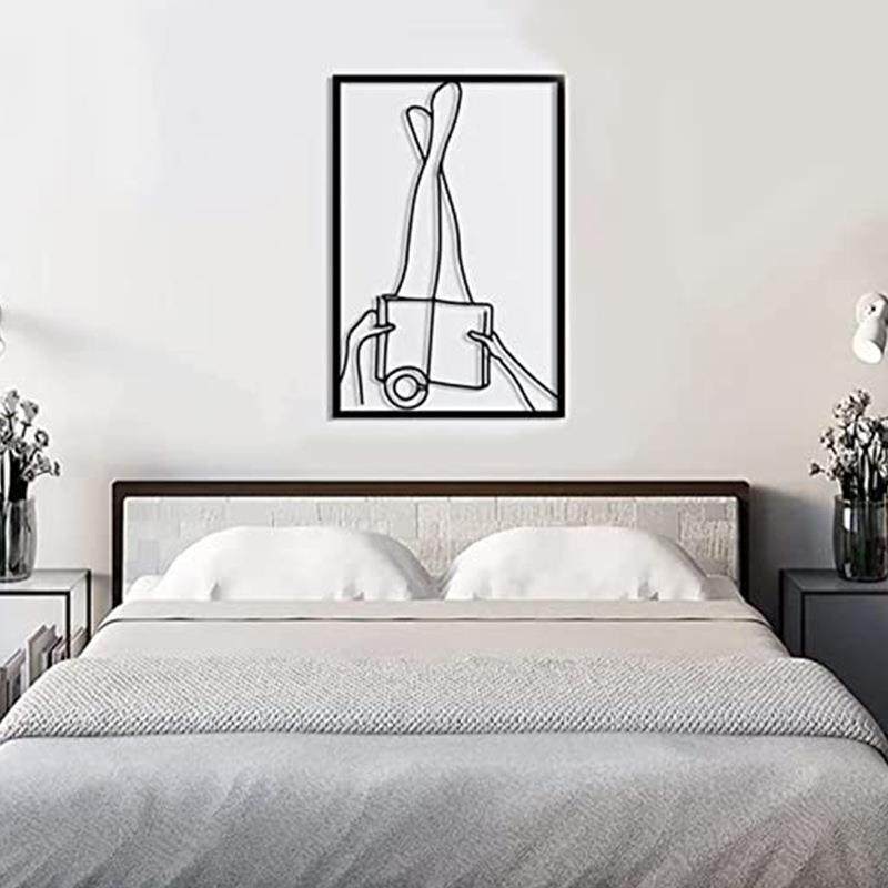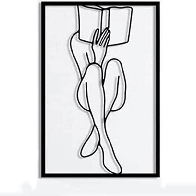 金属女性线条身体艺术极简主义女人墙面挂饰黑色简约读书铁艺画