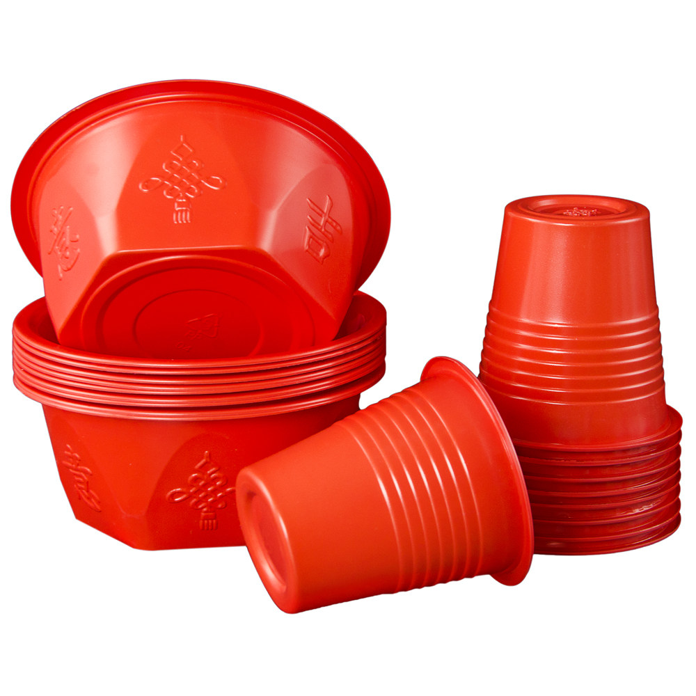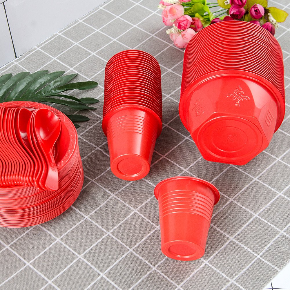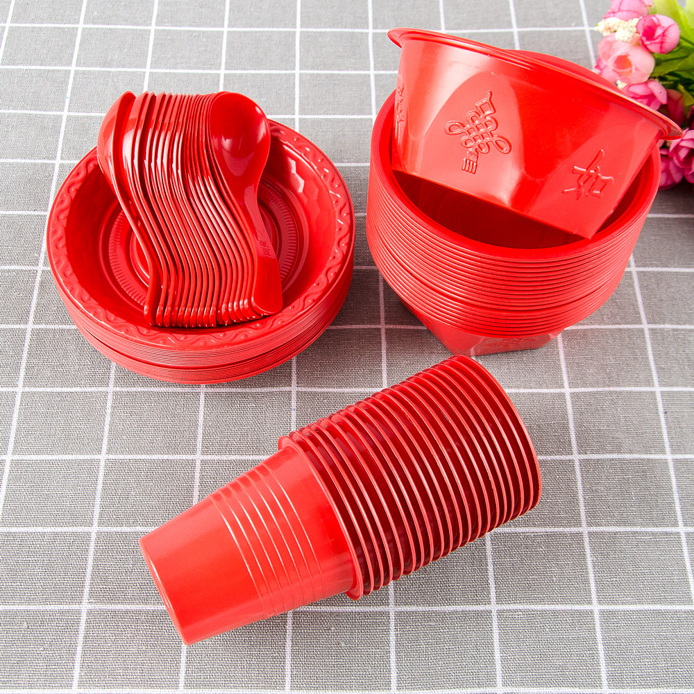 一次性碗筷套装餐具酒席杯碟勺子家用环保加厚高档喜宴结婚红色碗