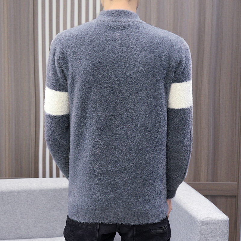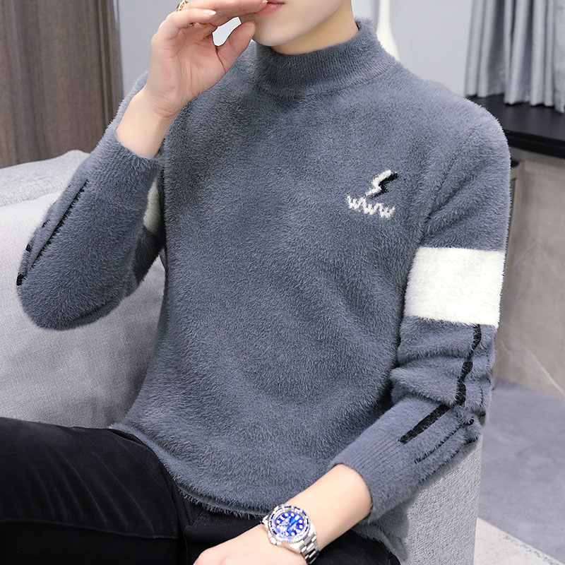 半高领水貂绒毛衣男士秋冬季加绒加厚针织打底衫潮流线衣保暖秋装