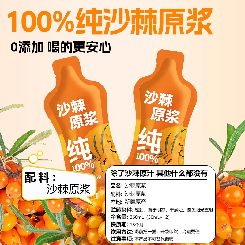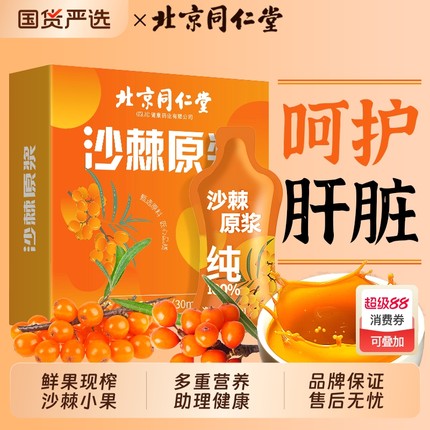 北京同仁堂沙棘原浆官方旗舰店正品新疆100%榨鲜果0沙棘汁VC新鲜