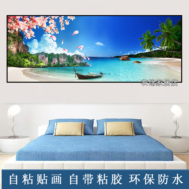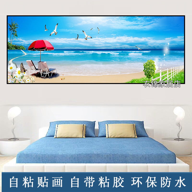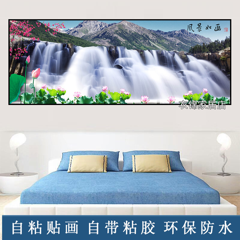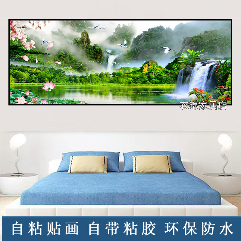 自粘墙纸贴画山水画客厅装饰画现代简约卧室墙画北欧壁画床头贴纸