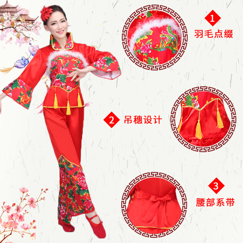 秧歌服女新款套装中老年广场舞扇子舞东北喜庆舞蹈服男腰鼓演出服