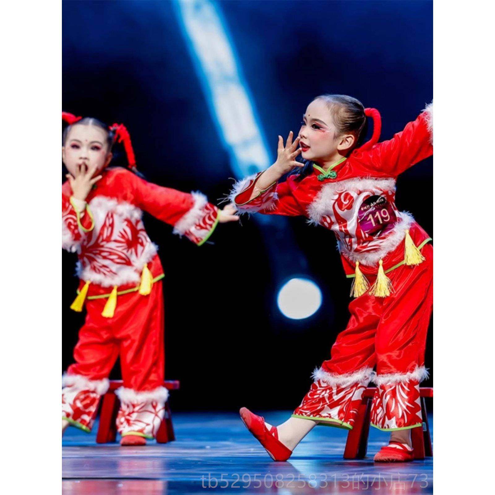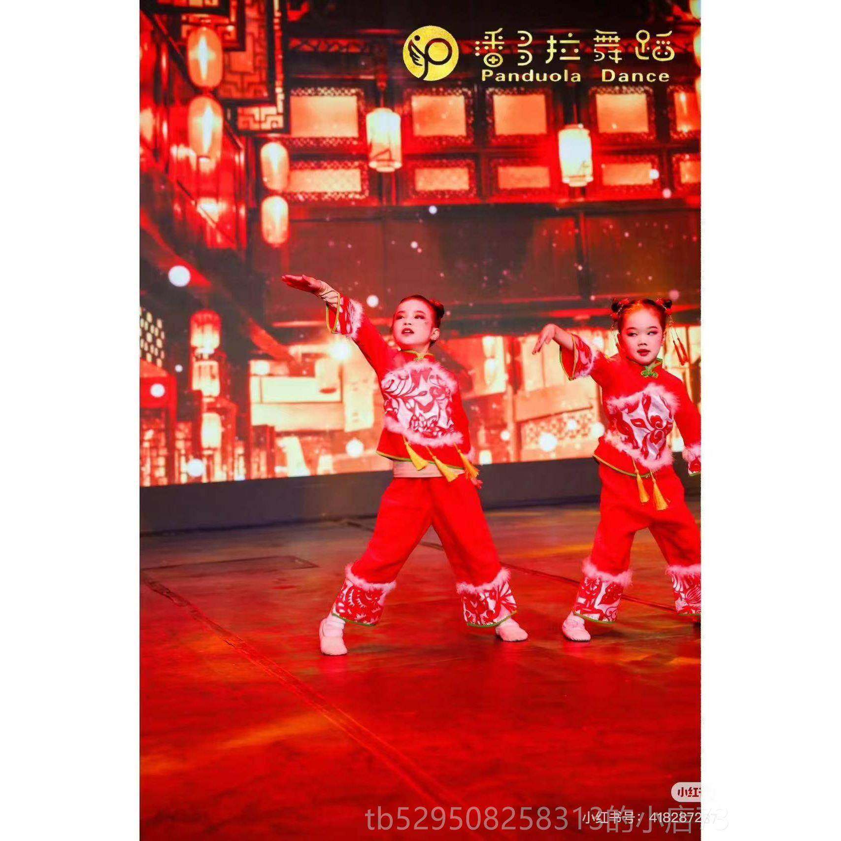 高档看戏小演出服儿喜庆红色舞蹈服开红门红幼红的中国结福娃表演
