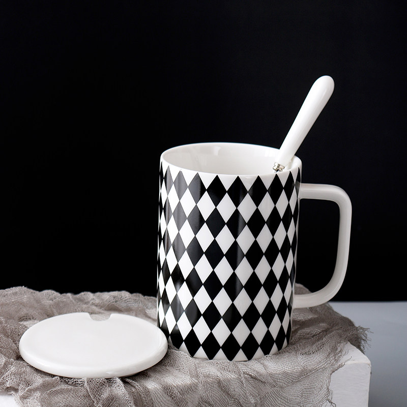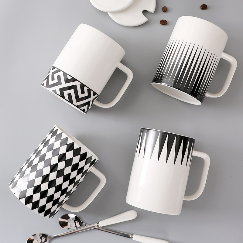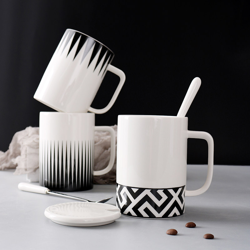 简约北欧陶瓷大容量马克杯牛奶咖啡杯创意办公茶杯水杯子带盖送勺