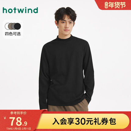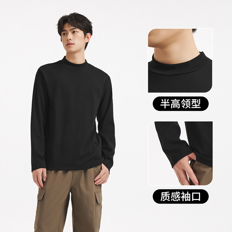 热风男士绒感打底衫上衣2025年冬季新款半高领贴身内搭打底T恤