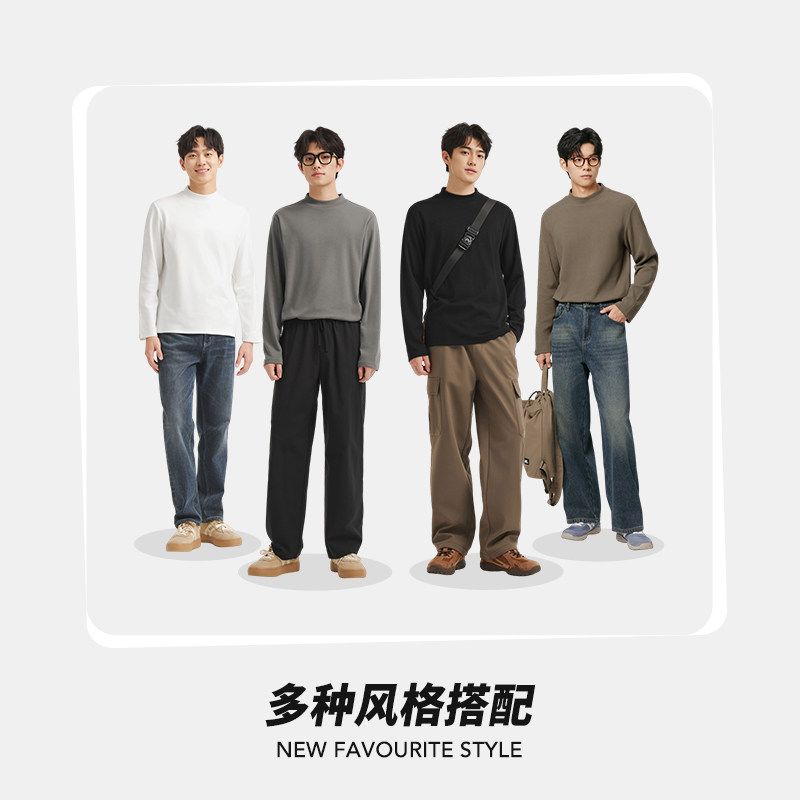 25年冬季新款男士半高领长T