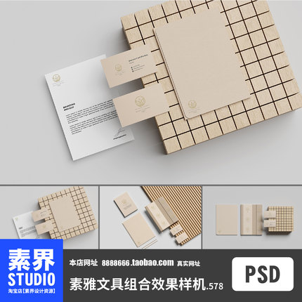 时尚简约咖啡色素雅文具组合名片信纸信封PSD效果图样机PS贴图