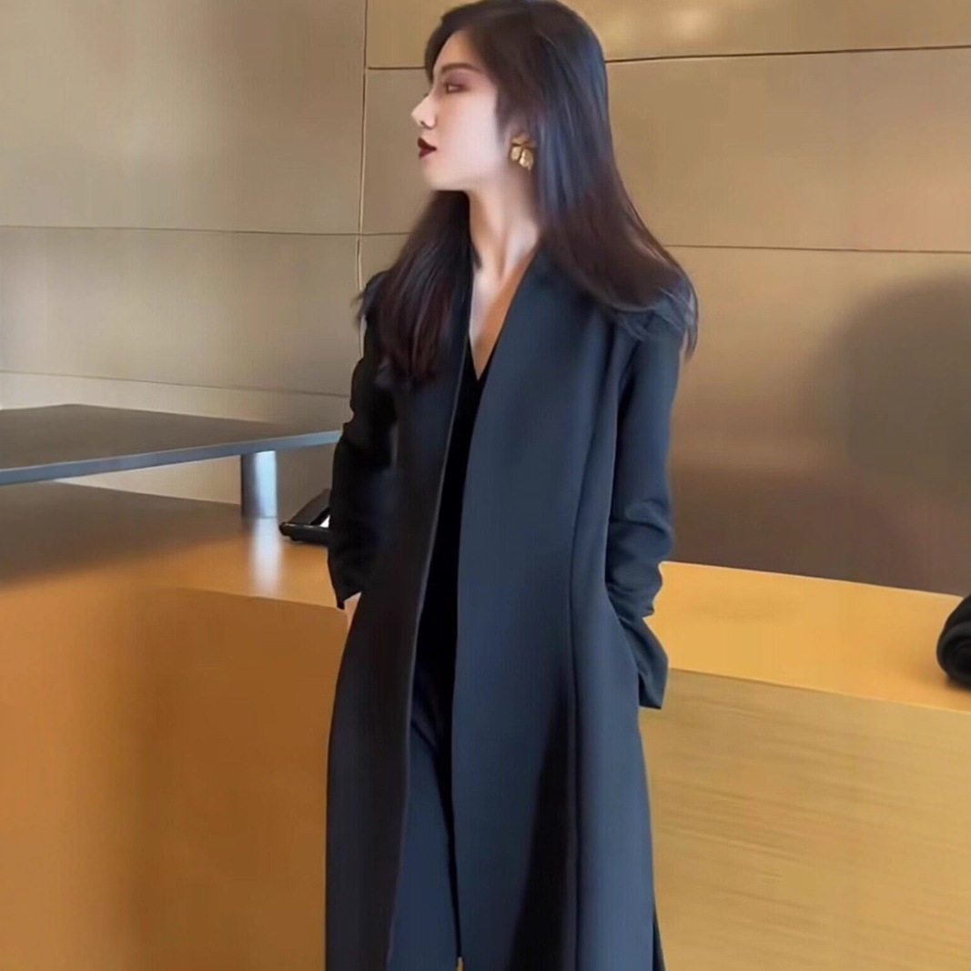 秋冬新款网红大码女装过膝修身风衣外套胖mm收腰显瘦大衣200斤