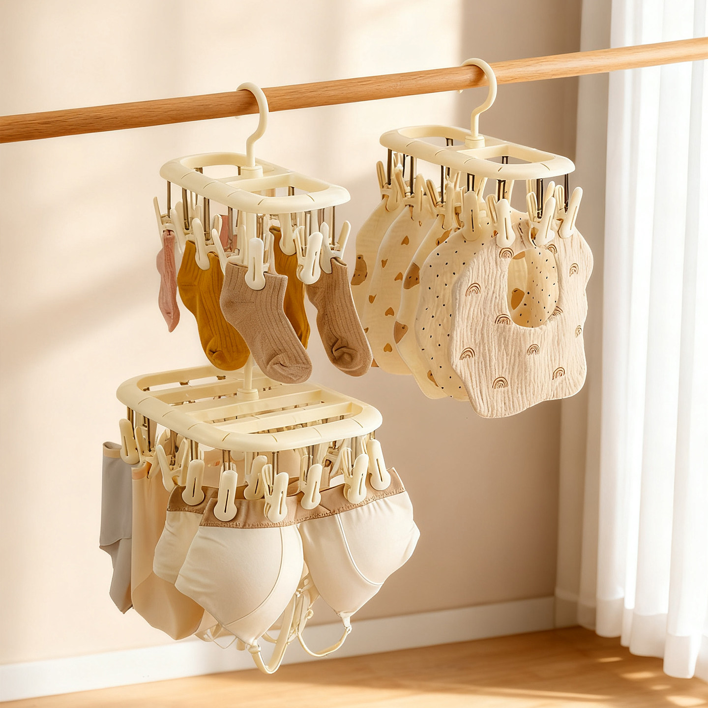奶油风多夹子袜子内衣晾晒架