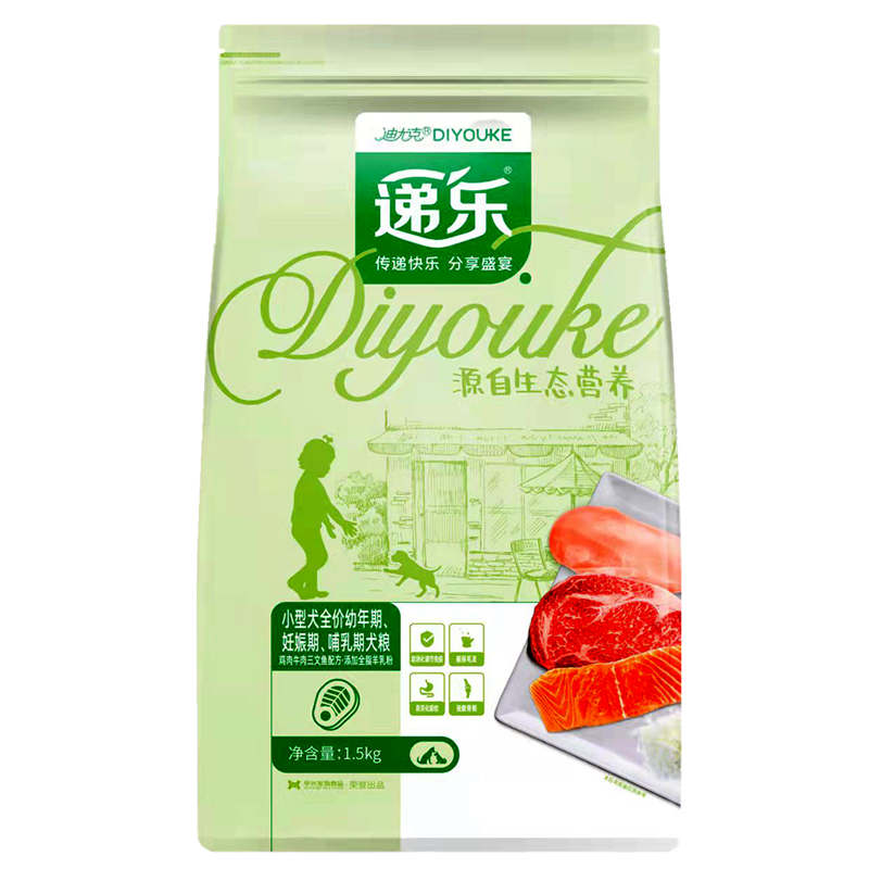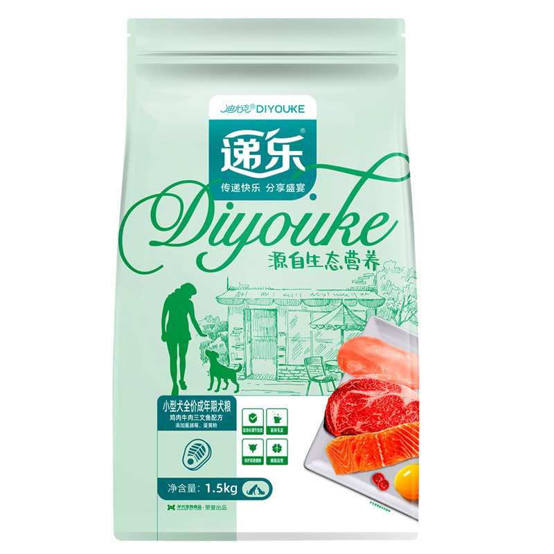 递乐狗粮1.5kg成犬/幼犬鸡肉牛肉三文鱼泰迪比熊博美贵宾