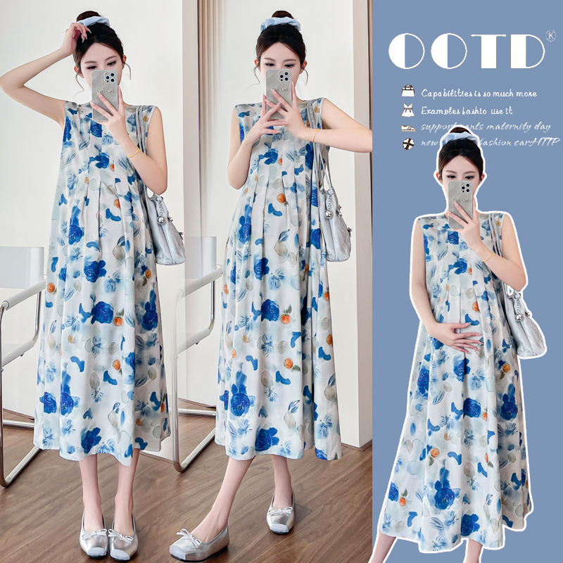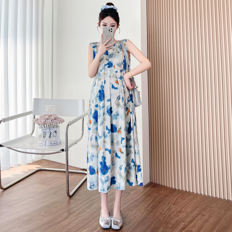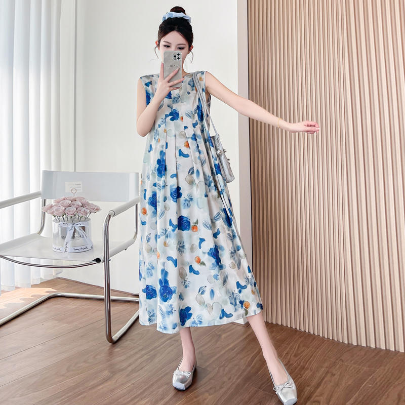 孕妇装夏装时尚无袖印花背心裙夏季连衣裙宽松休闲裙子夏天孕妇裙