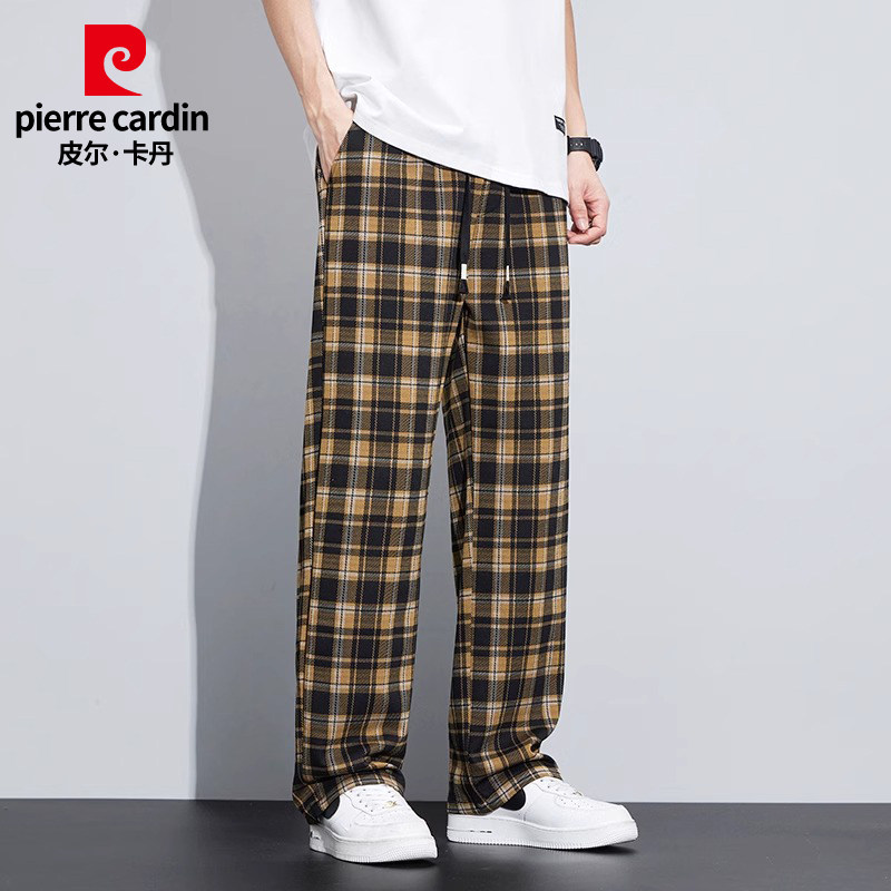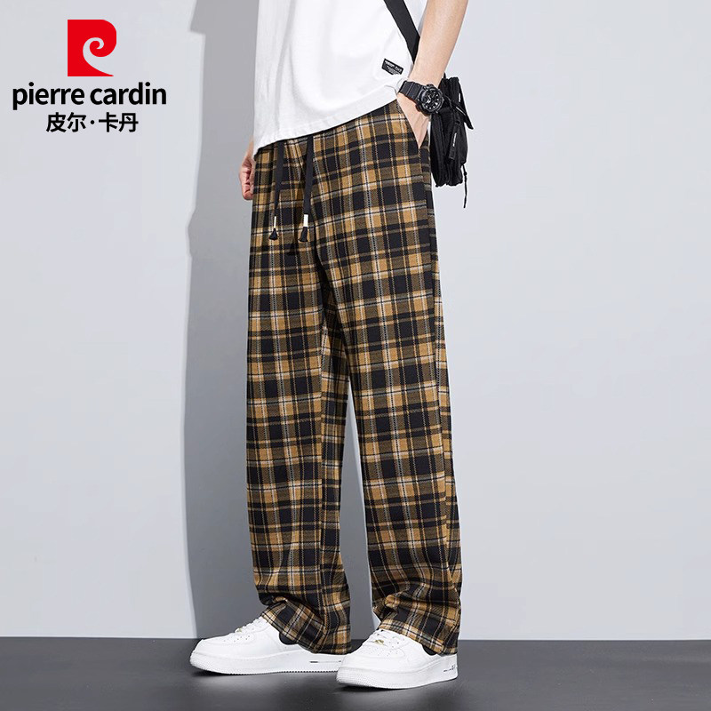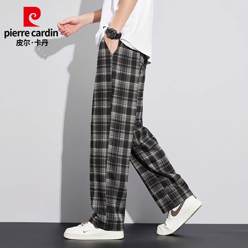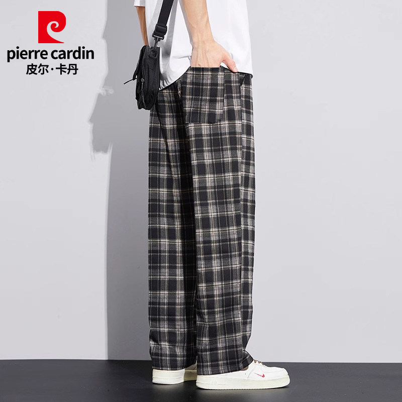 Pierre Cardin/皮尔卡丹冬季格子宽松阔腿裤男加绒休闲裤直筒长裤