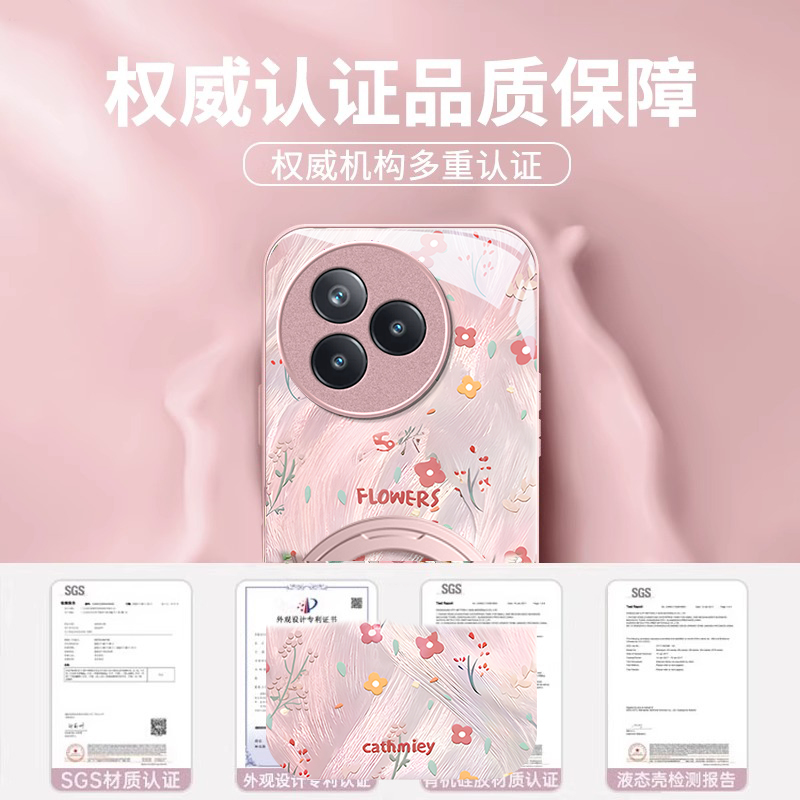适用小米CIVI5Pro手机壳4新款mi简约碎花旋转支架3全包防摔液态2硅胶专用玻璃带好看硬简约外挂绳保护套女