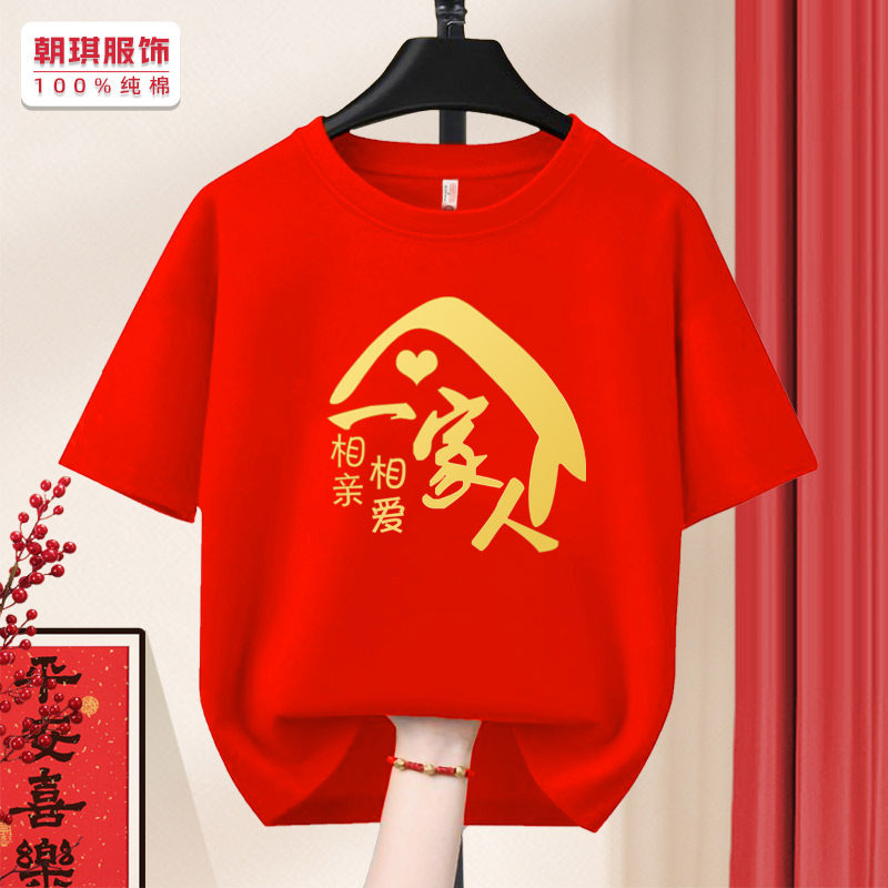相亲相爱一家人t恤新年短袖红色衣服聚会全家福老人生日寿宴定制
