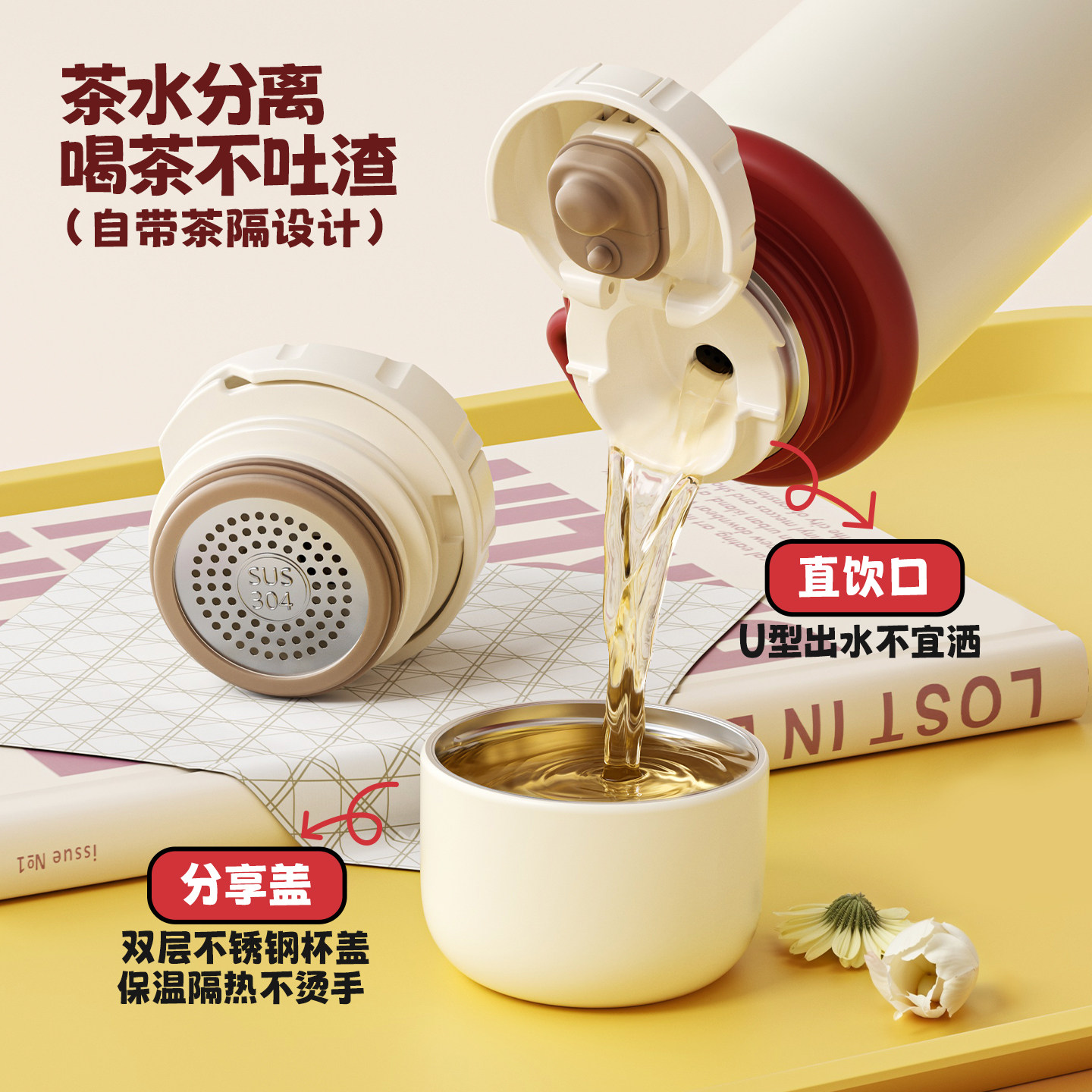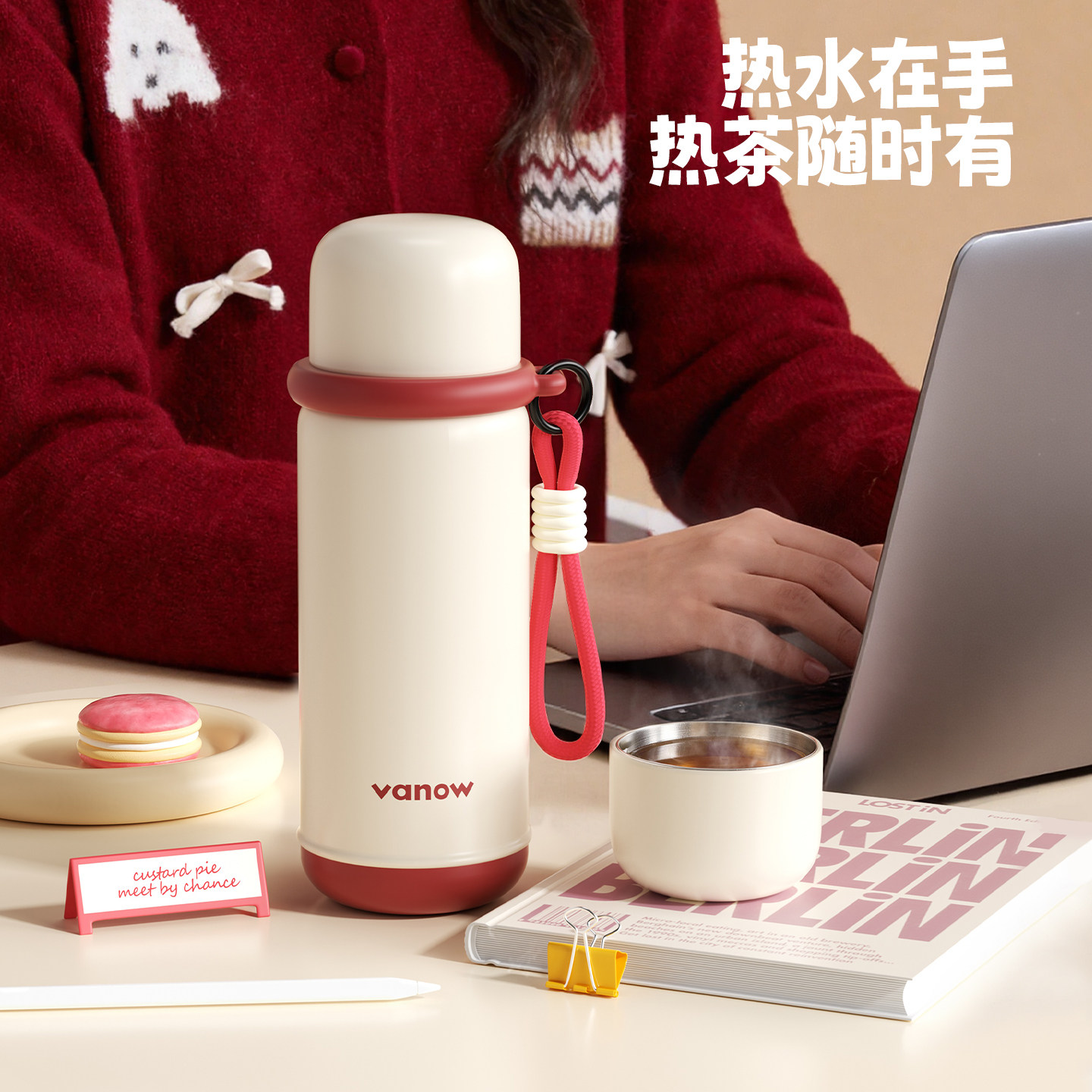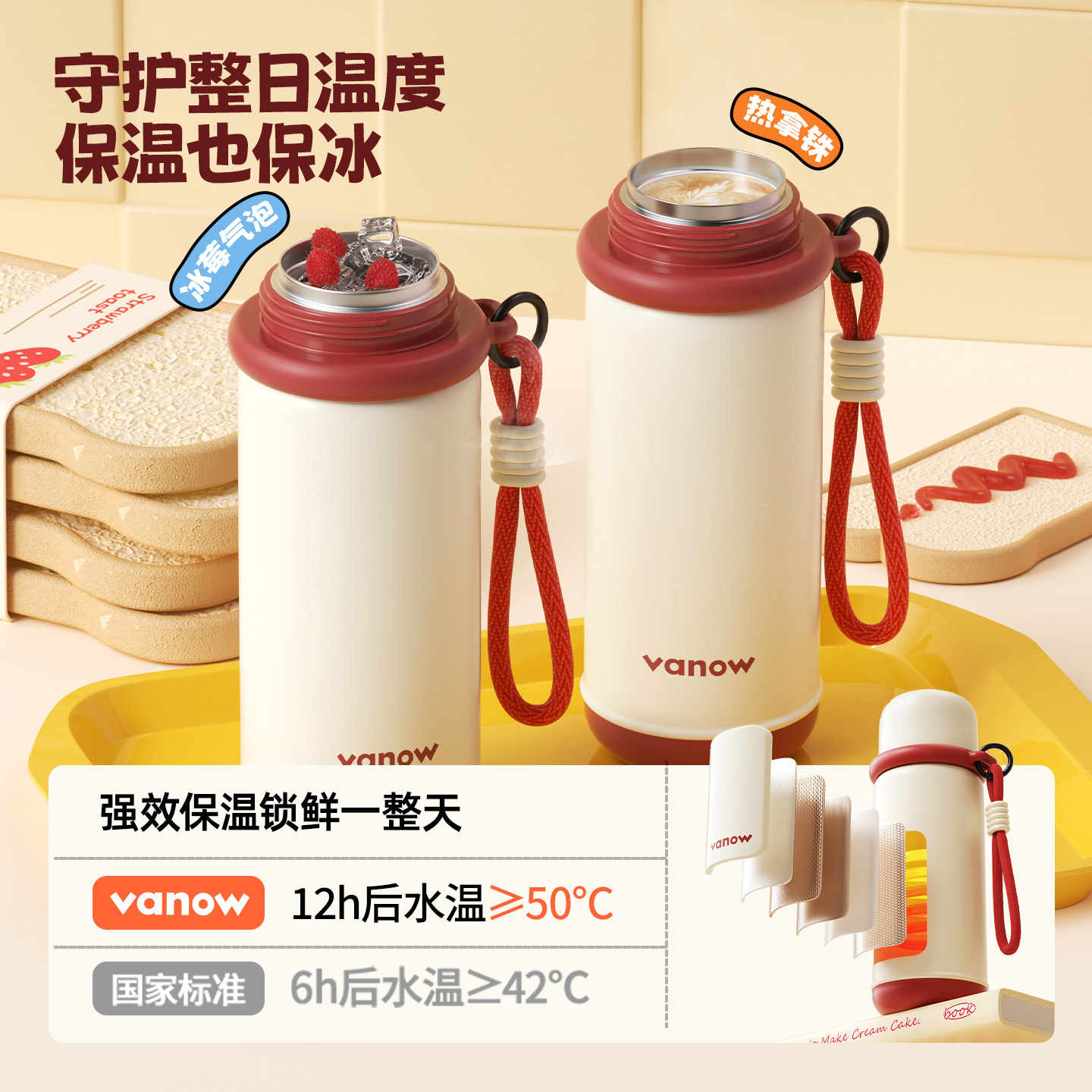 Vanow保温杯女生2025新款高颜值陶瓷内胆茶水分离水杯子马年礼物