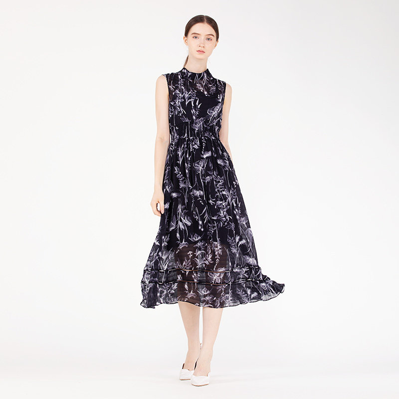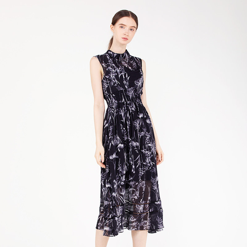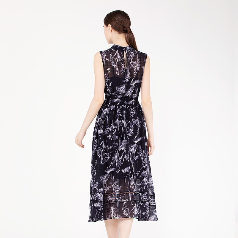 readme夏女士修身收腰无袖雪纺气质印花长裙连衣裙B20867529