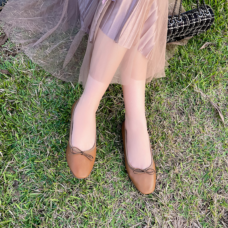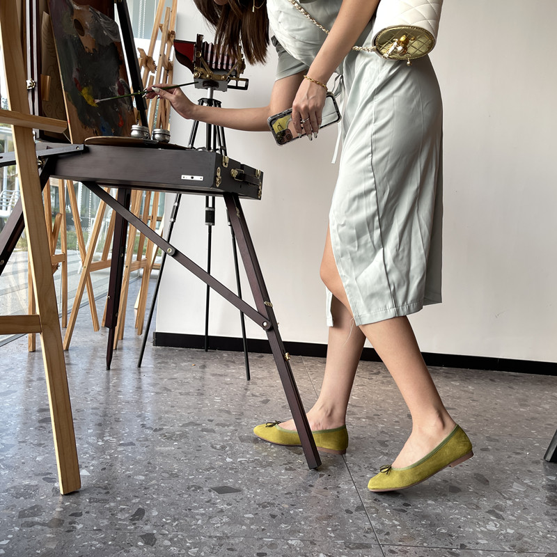 2025春夏新款芭蕾舞平底鞋女复古蝴蝶结浅口单鞋平跟绿色圆头软鞋