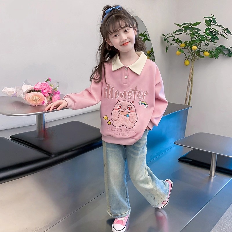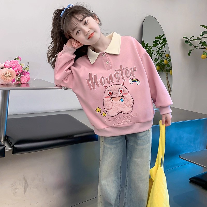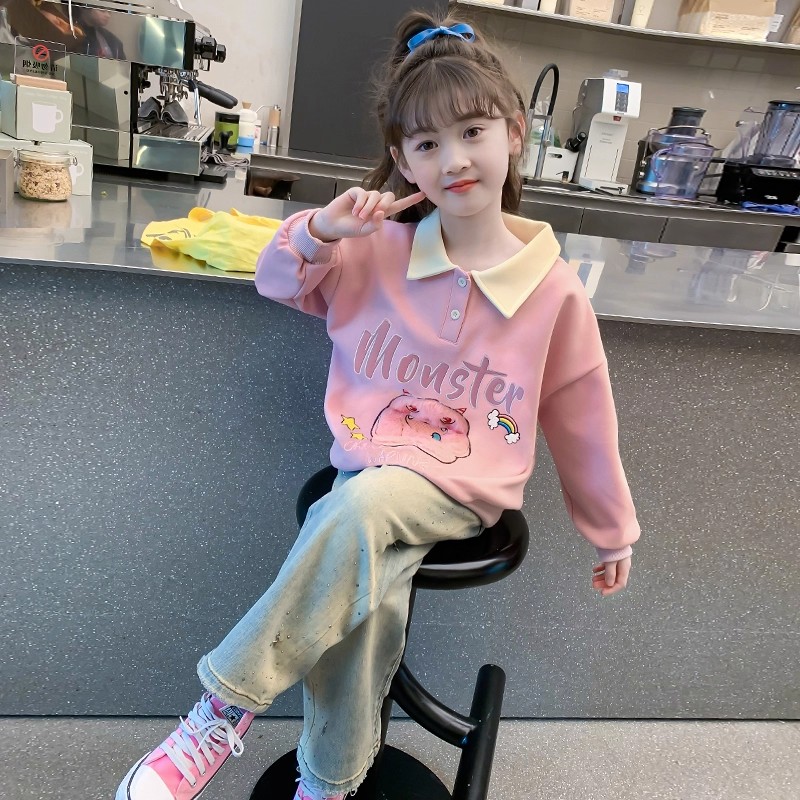 女童卫衣2025新款秋装儿童洋气时髦打底衫春秋款女孩上衣粉色蓝色