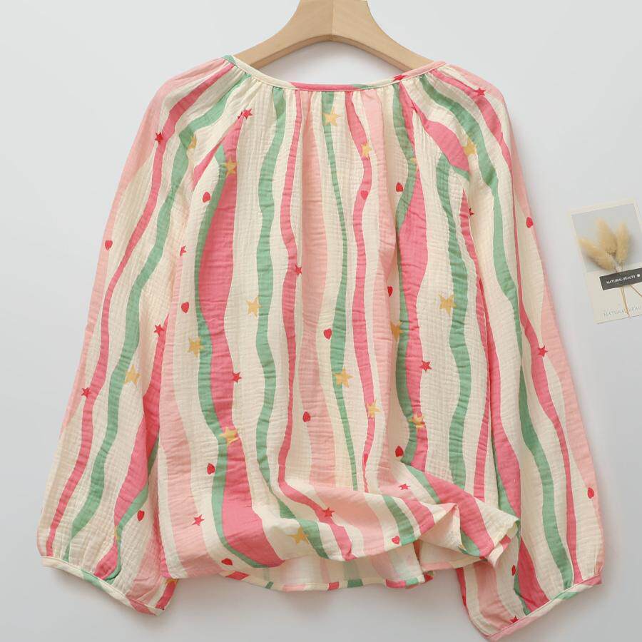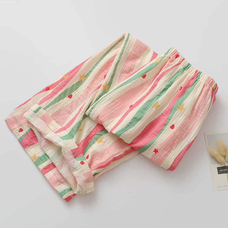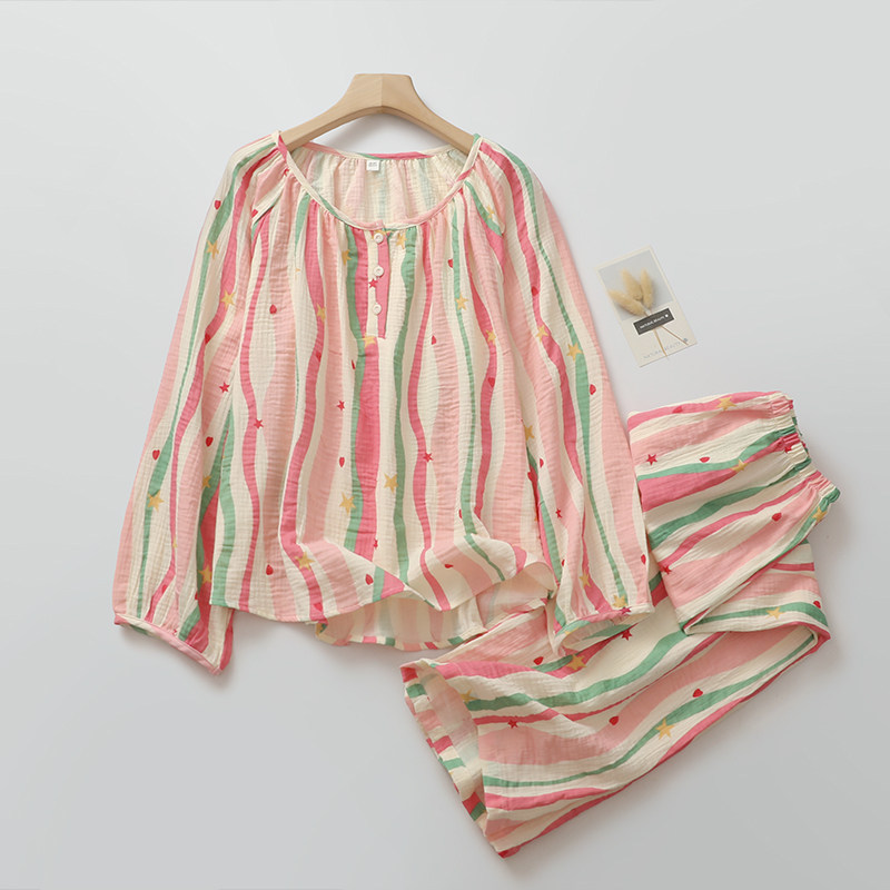 少女感波浪睡衣女生纯棉纱薄款圆领直筒春夏薄款家居睡眠服可外穿