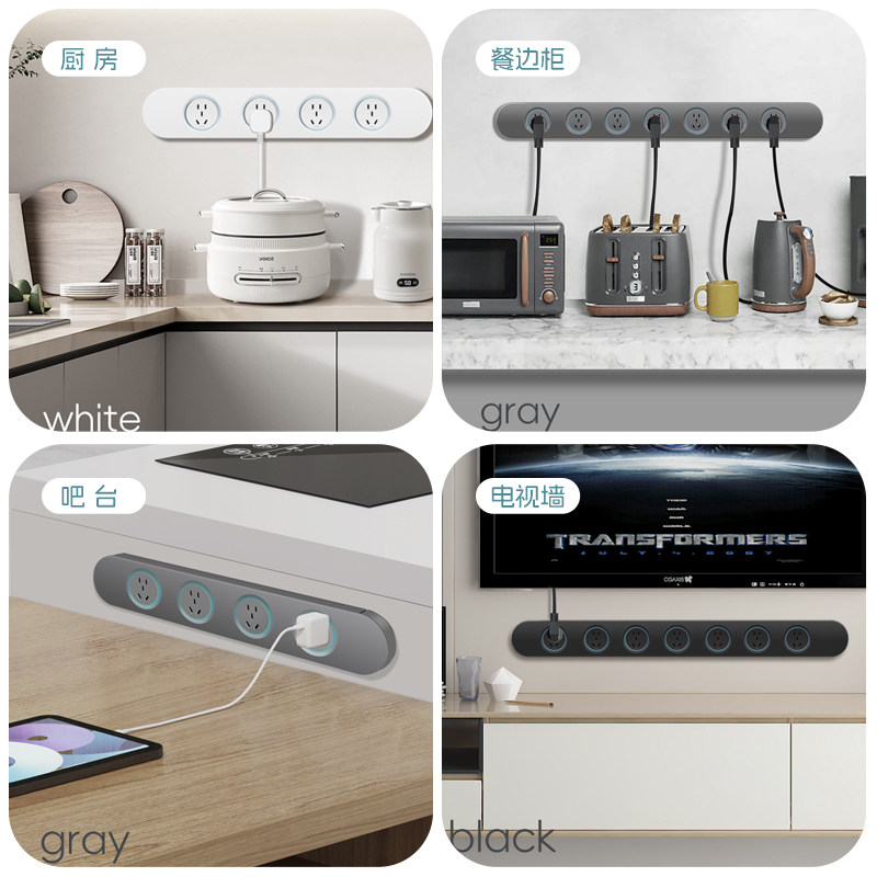 嵌入式超薄极窄一体式轨道插座明装家用接线板餐边柜厨房联排插排