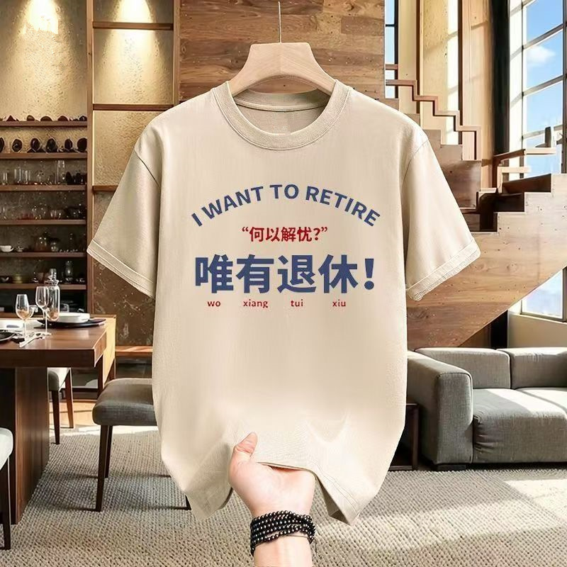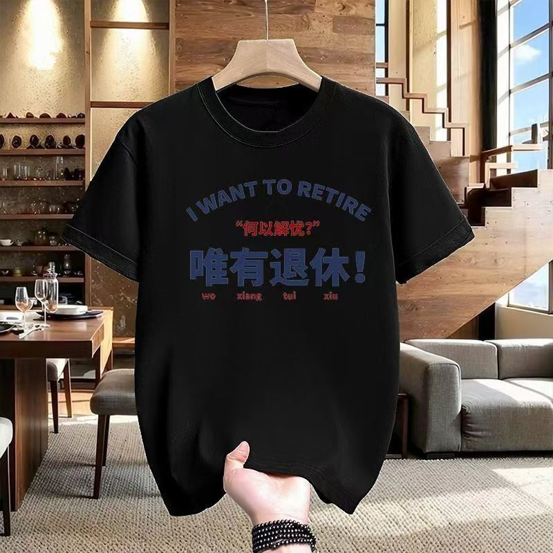 何以解忧退休打工人短袖T恤男女宽松印花打底衫ins衣服夏季体恤