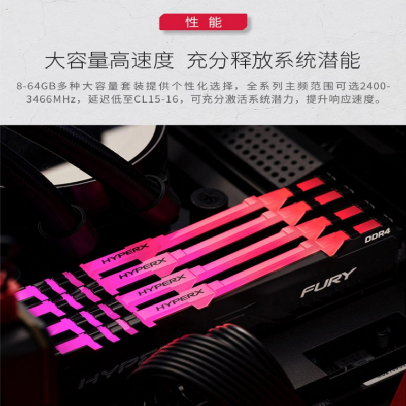 惠普DELL金士顿fury骇客DDR4 3733Mhz 8G/16G灯条台式机内存条XMP