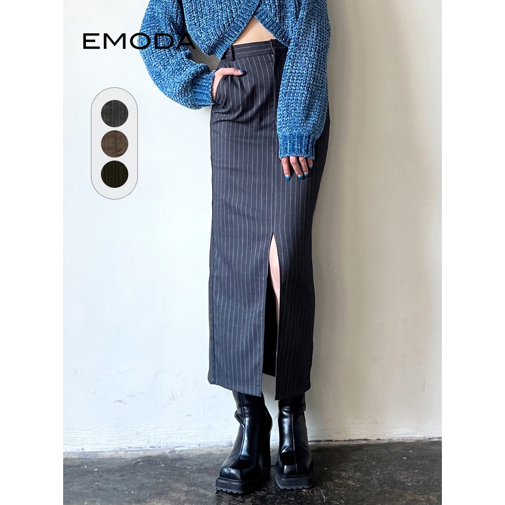 EMODA秋季高腰轻熟风气质知性中长款开叉半身裙0423608305