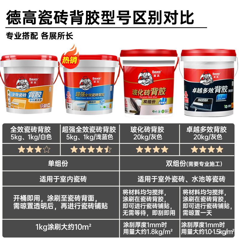 德高瓷砖背胶强力墙砖玻化砖全效桶装超强胶泥双组分背涂胶泥5kg
