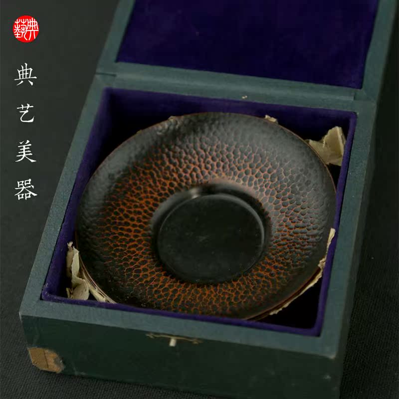 日本造纯红铜茶托汤吞台日式手工功夫茶道具圆形配件杯托