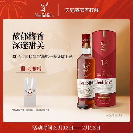 【官方】格兰菲迪12年天使雪莉单一麦芽苏格兰威士忌洋酒