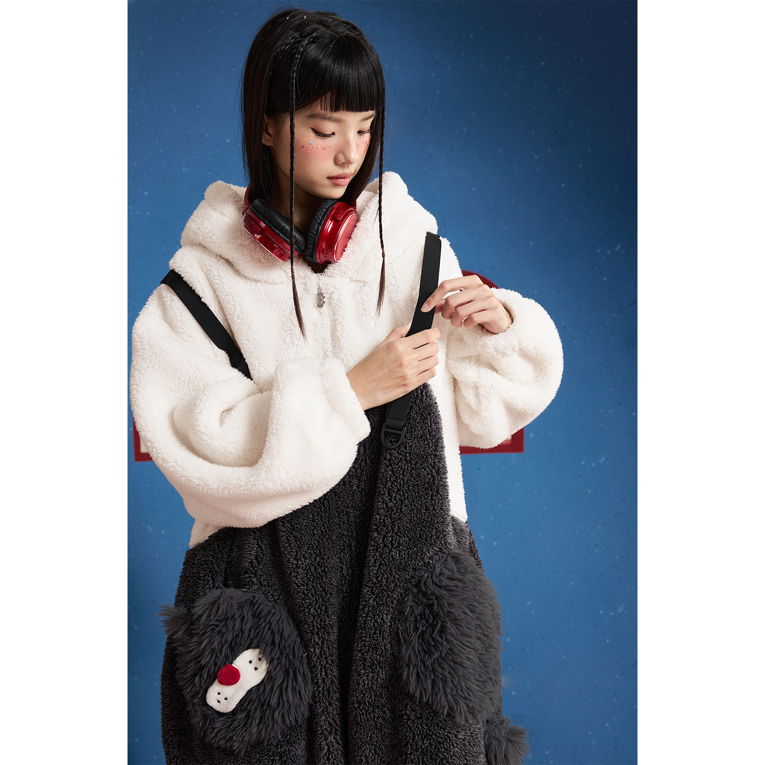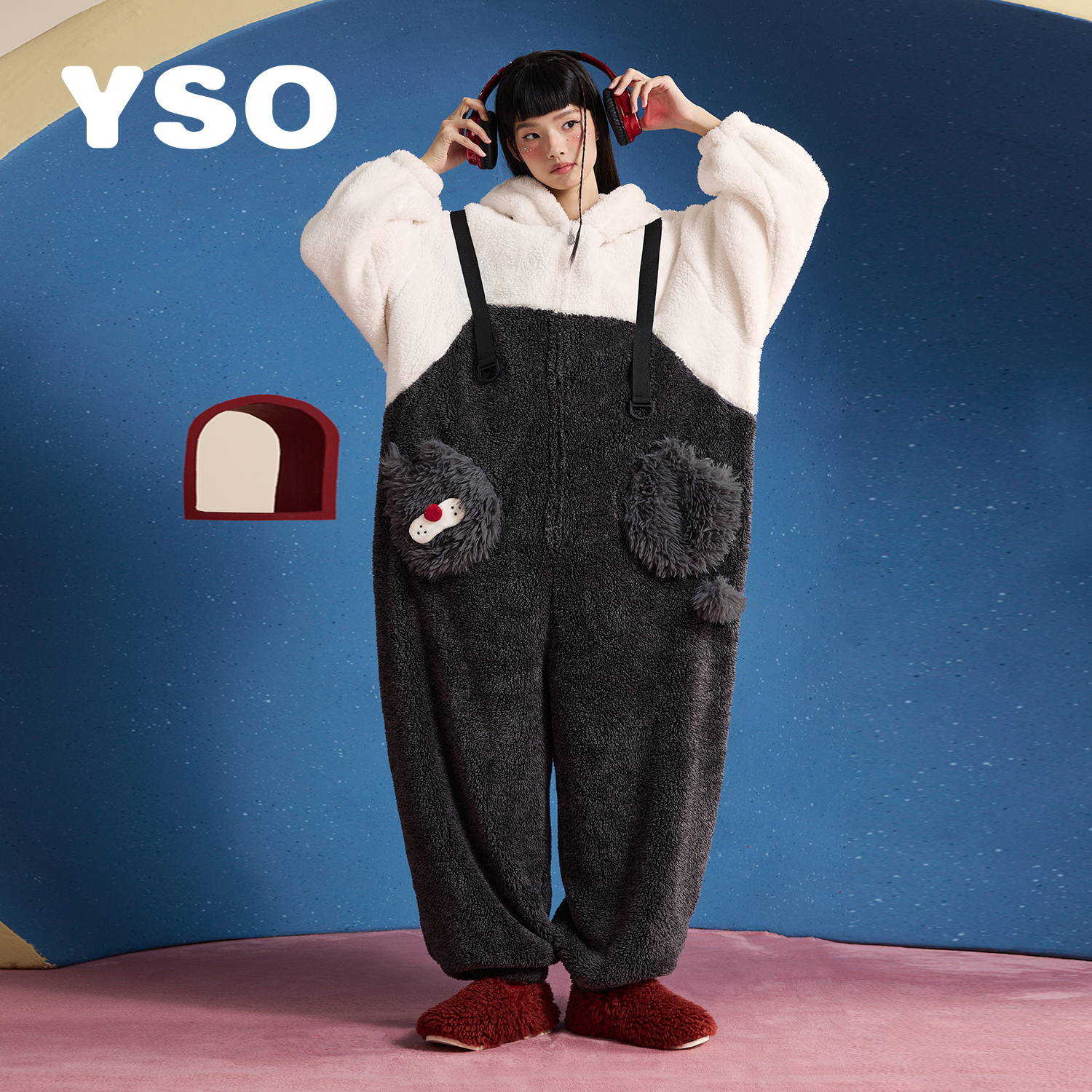 yso【定金预售】连体睡衣女秋冬加厚珊瑚绒中性长款可爱情侣睡衣D