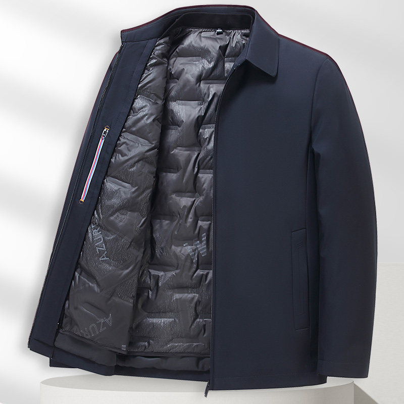 爸爸冬装可拆卸内胆羽绒服夹克男短款中年男装红色婚礼服上衣外套