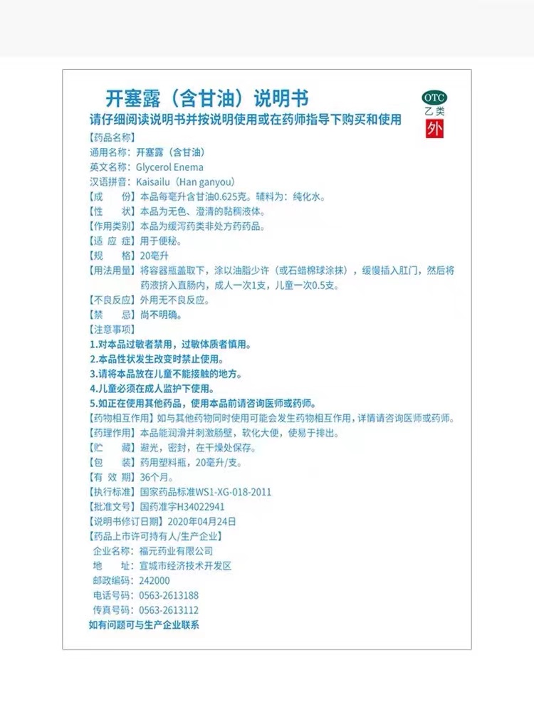 【易下】开塞露(含甘油)20ml*20支/盒