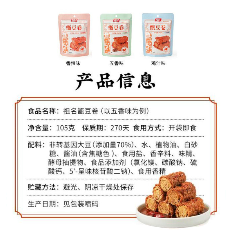 祖名五香味甑豆卷素肉豆腐干辣条休闲解馋追剧即食零食夜宵