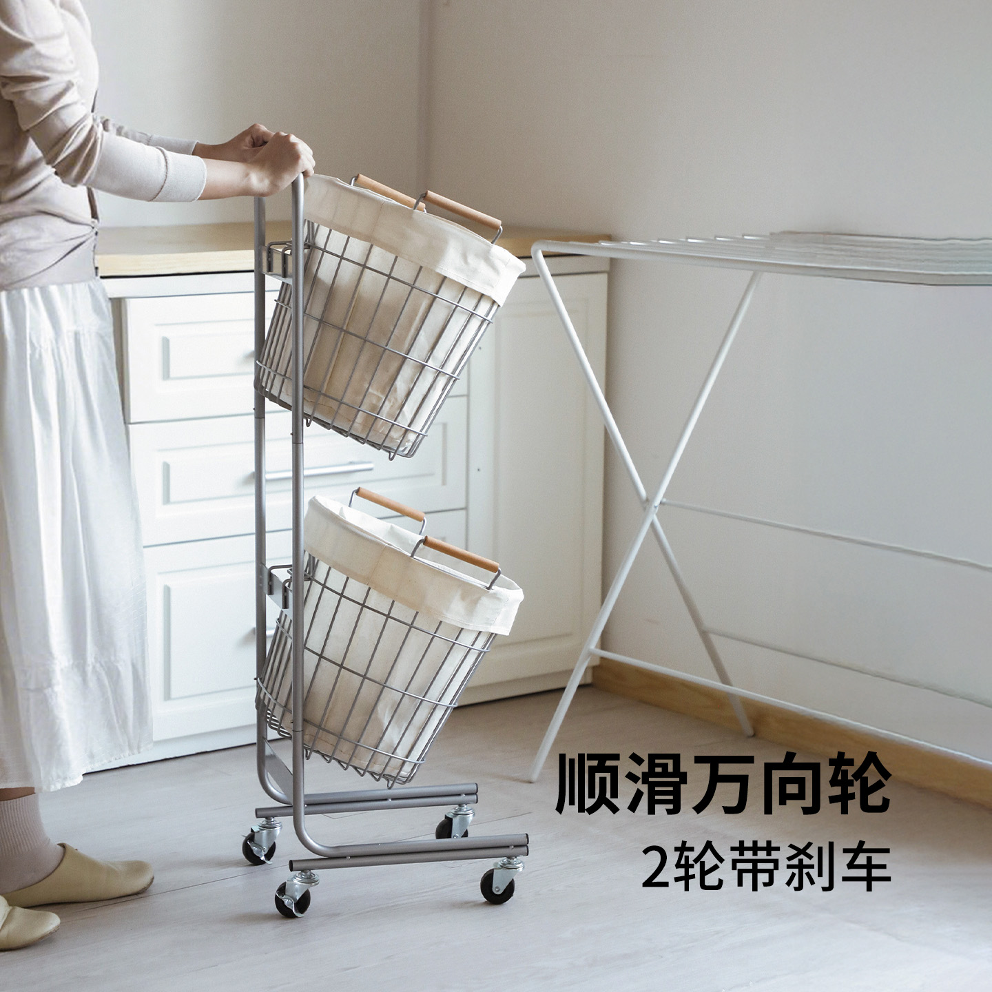 霜山双层脏衣篮家用移动大容量脏衣篓分类收纳筐卫生间洗衣小推车