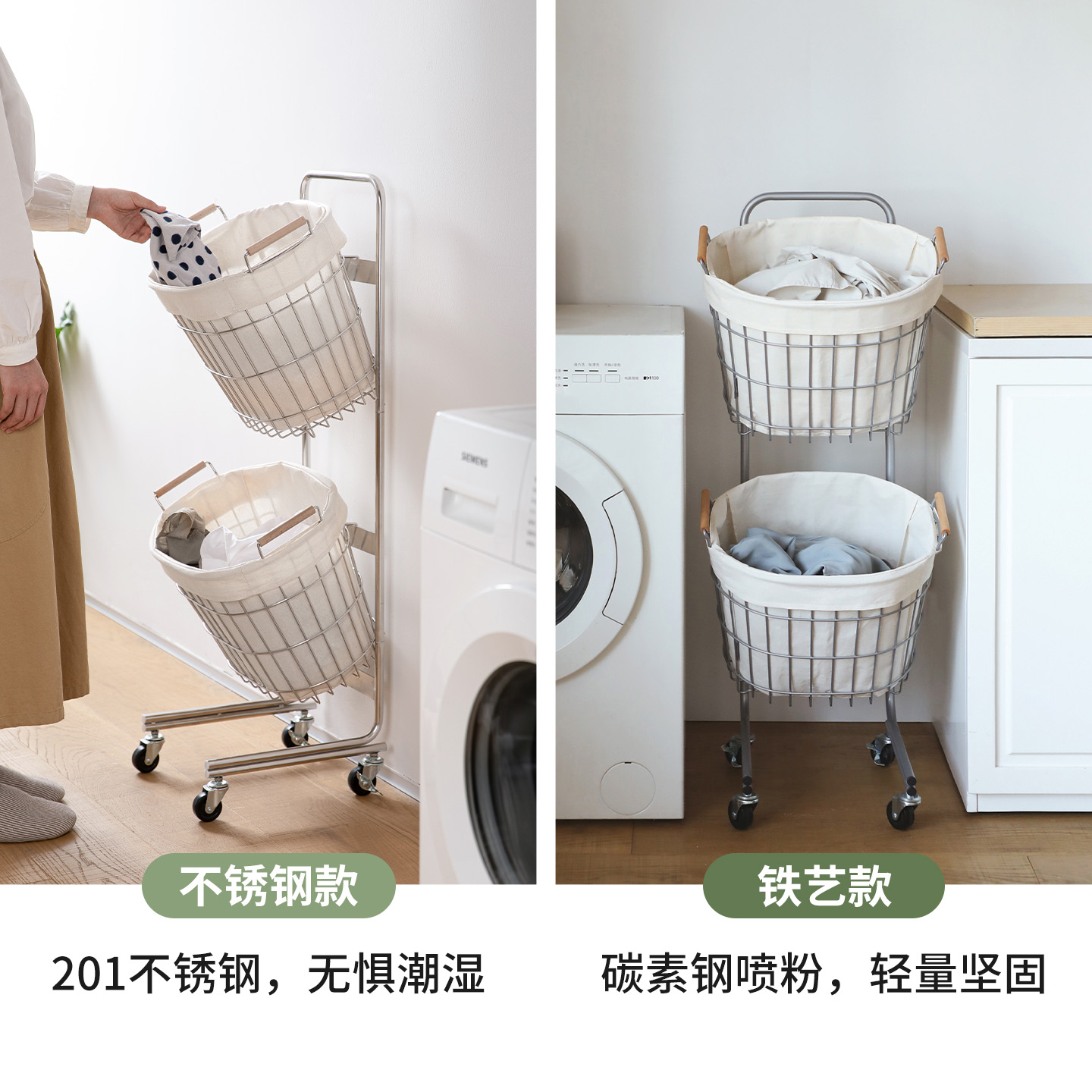霜山双层脏衣篮可移动多功能收纳