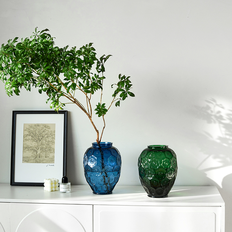 高级特大号欧式轻奢复古浮雕玻璃花瓶摆件客厅插花水培鲜花干花