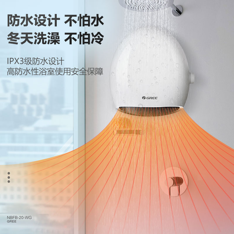 格力电暖气家用卧室轻音速热取暖器小型可壁挂浴室防水省电暖风机