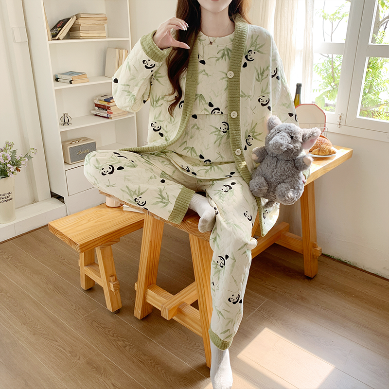 三件套空气棉喂奶哺乳产后睡衣