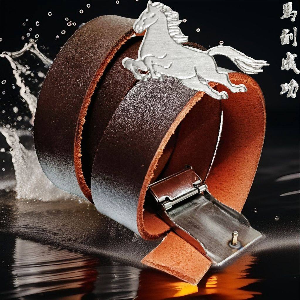新款加长切割牛皮皮带老式滚轴钢扣腰带手工男士打孔真皮裤带耐用