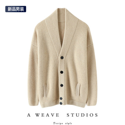 意大利设计师气质款!加厚V翻领男式羊绒开衫纯羊绒毛衣针织外套