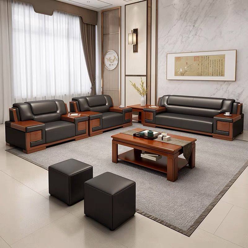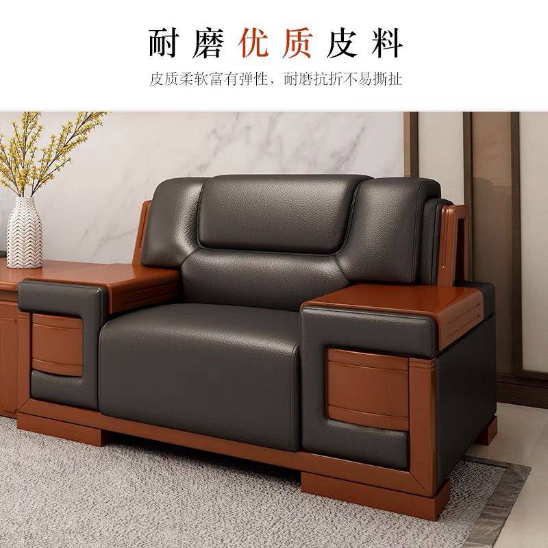 办公室沙发三人位商务会议洽谈会客接待室新中式真皮茶几组合套装