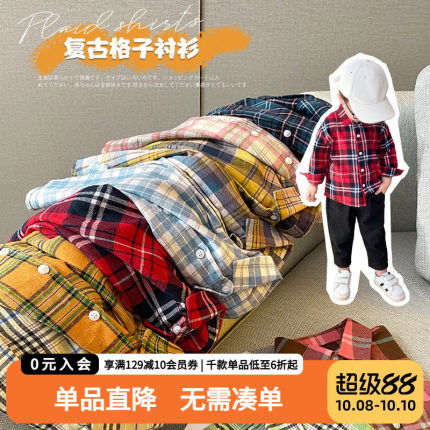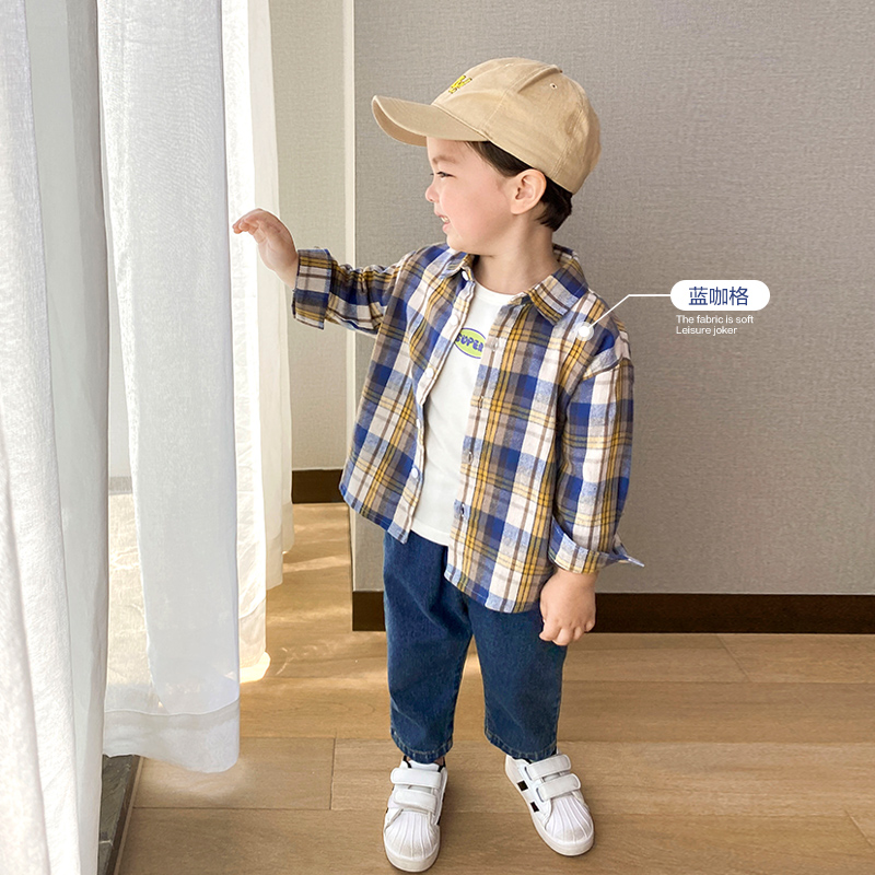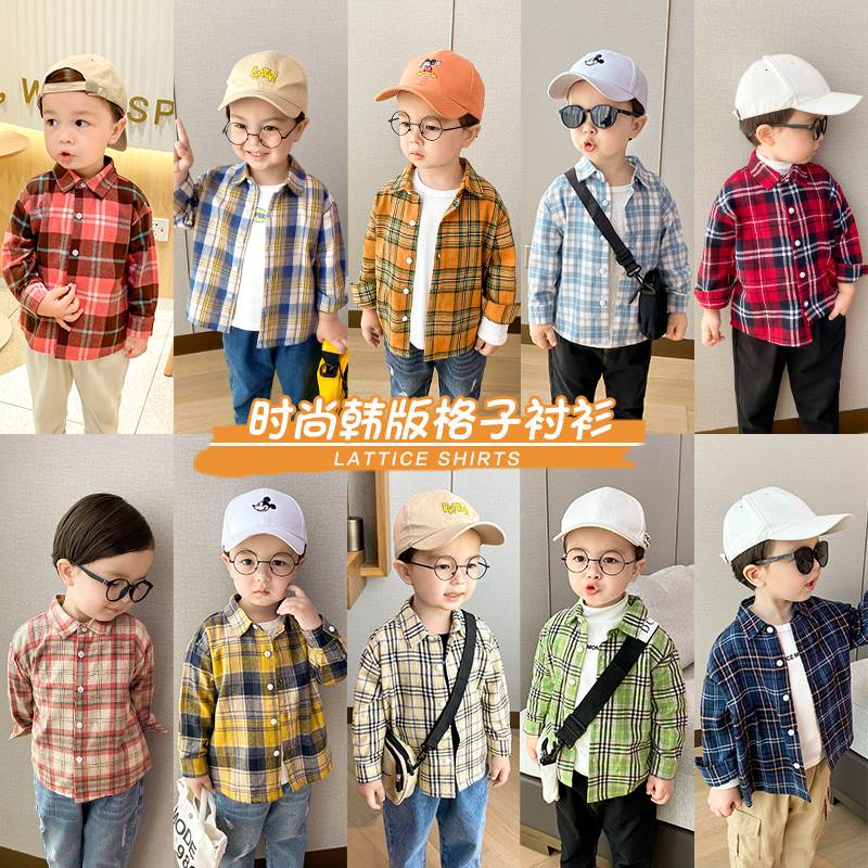 男童格子衬衫秋装外套春秋款婴儿童装小童宝宝洋气纯棉长袖衬衣潮