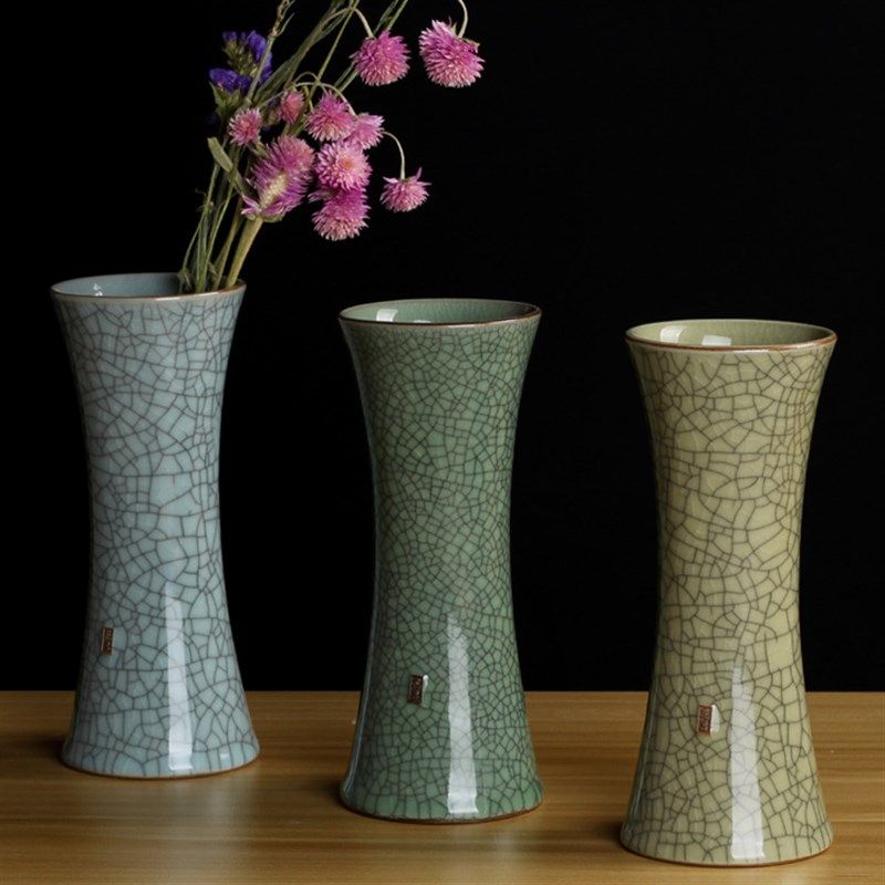 青瓷喇叭冰裂花瓶创意家居装饰摆件陶瓷花插办公居家水培瓶子